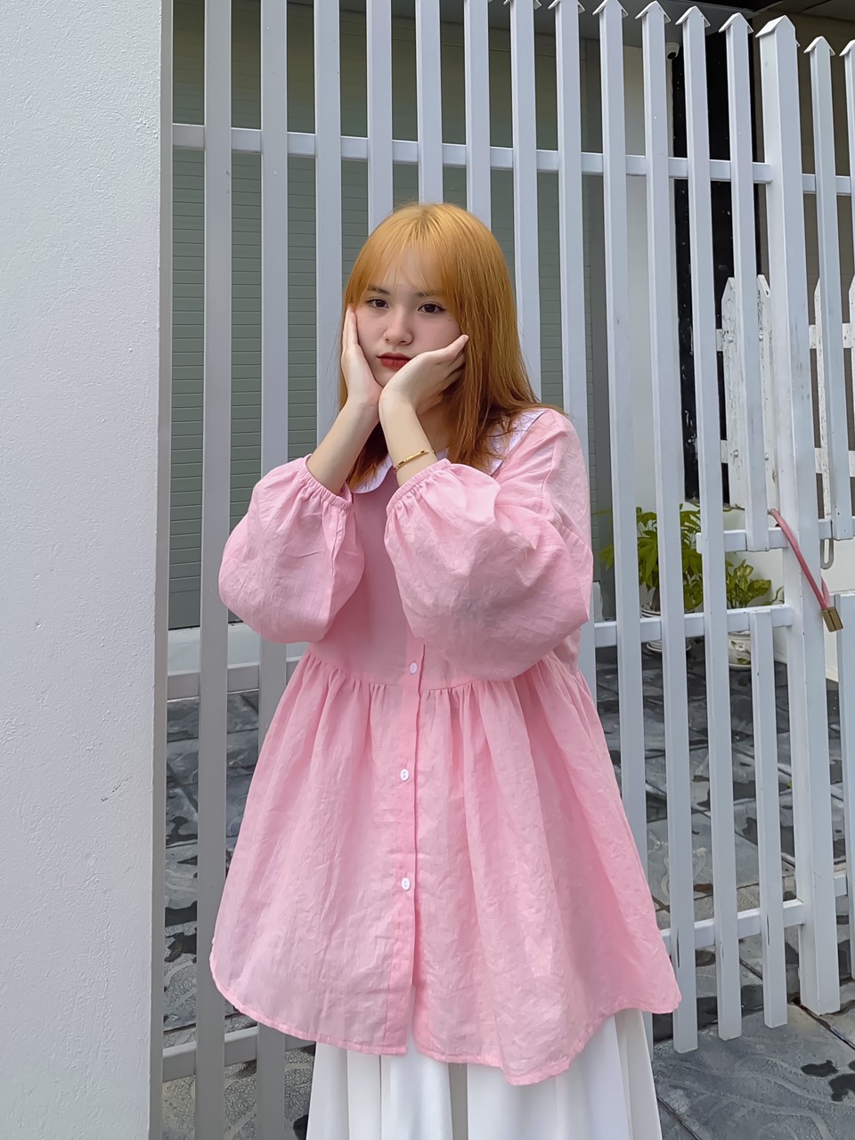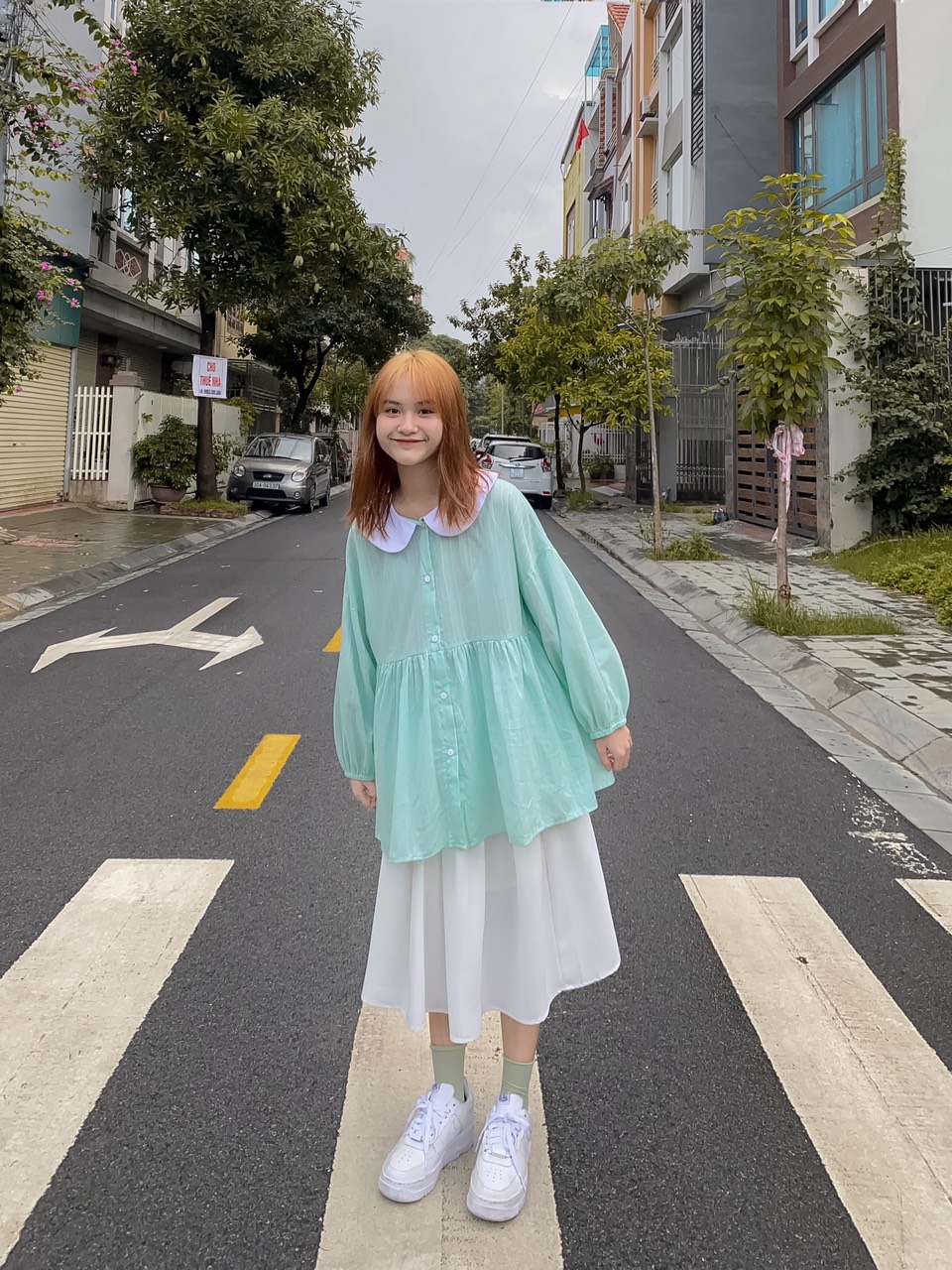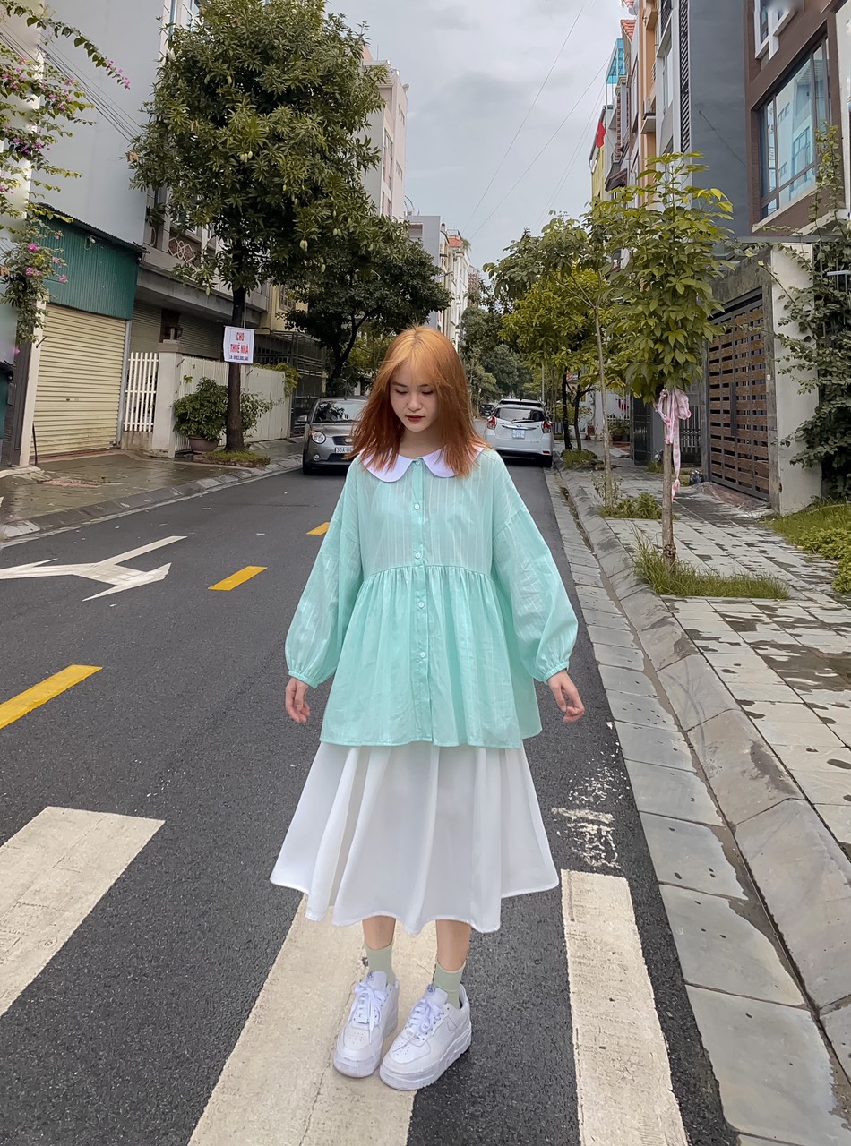 ➖ Áo babydoll cổ sen phối màu #madebymint vải đũi gân trắng, chất vải mềm mát. Phần tay áo phồng nữ tính.