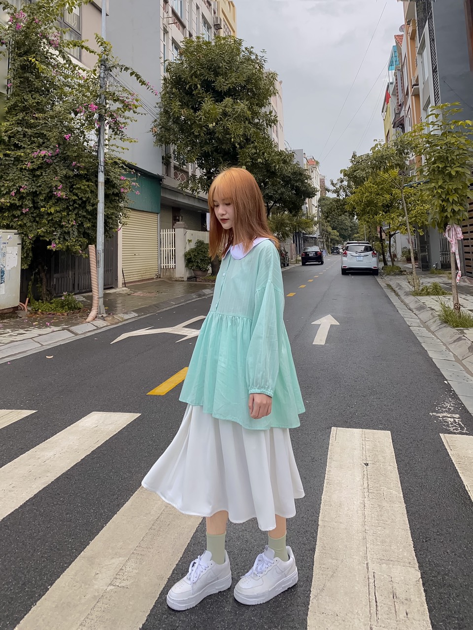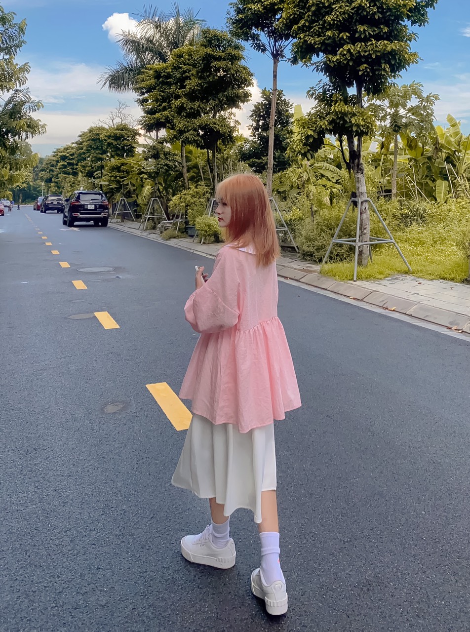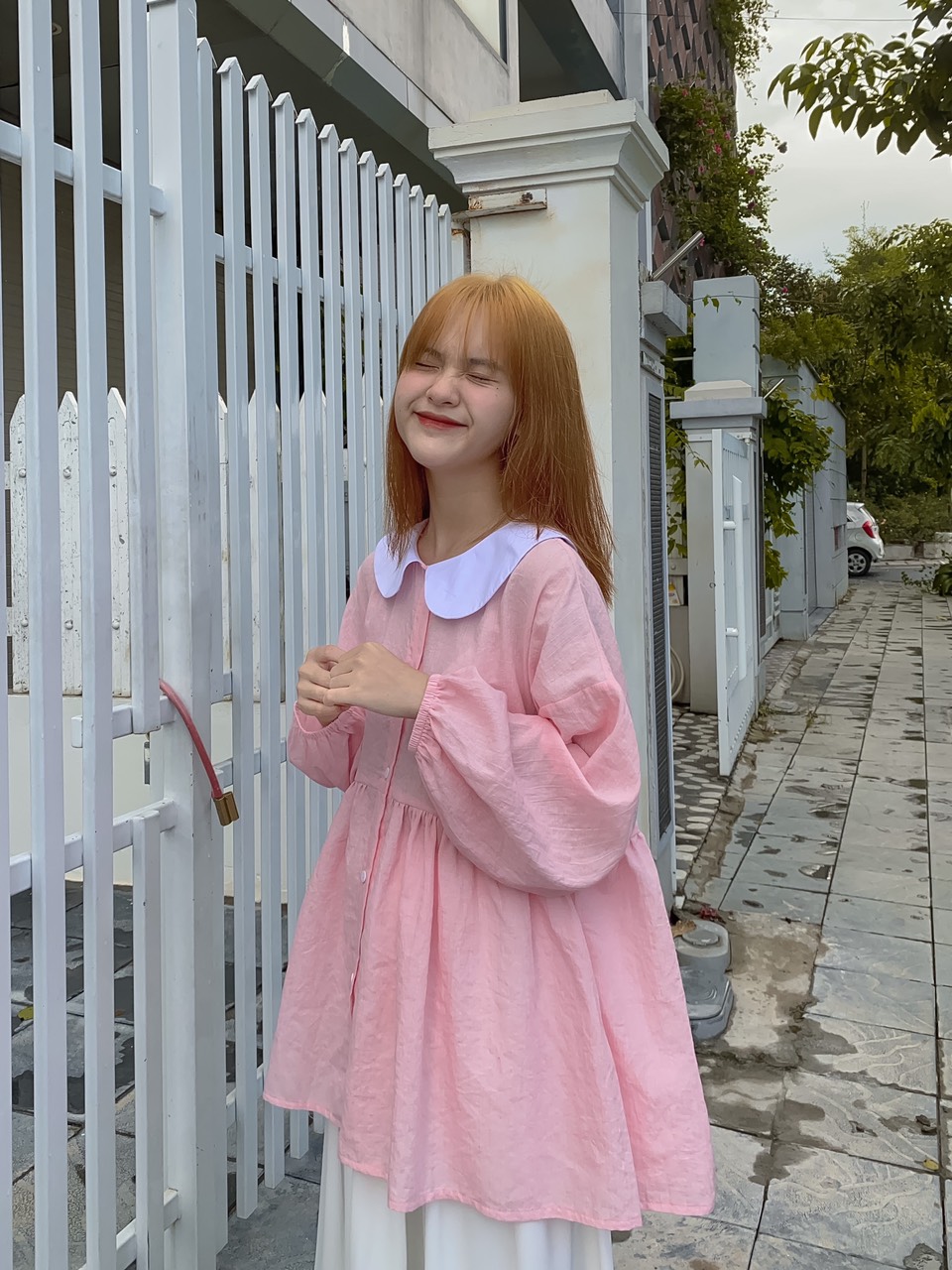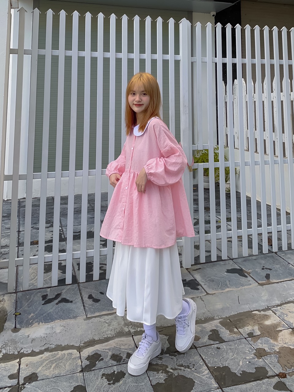 ➖ Áo babydoll cổ sen phối màu #madebymint vải đũi gân trắng, chất vải mềm mát. Phần tay áo phồng nữ tính.