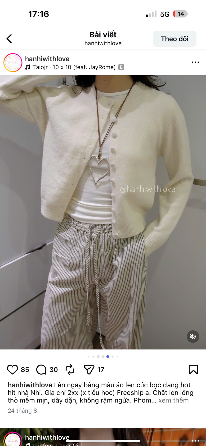 ÁO CARDIGAN CÚC BỌC LEN MÃ SH225
