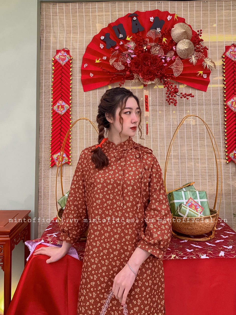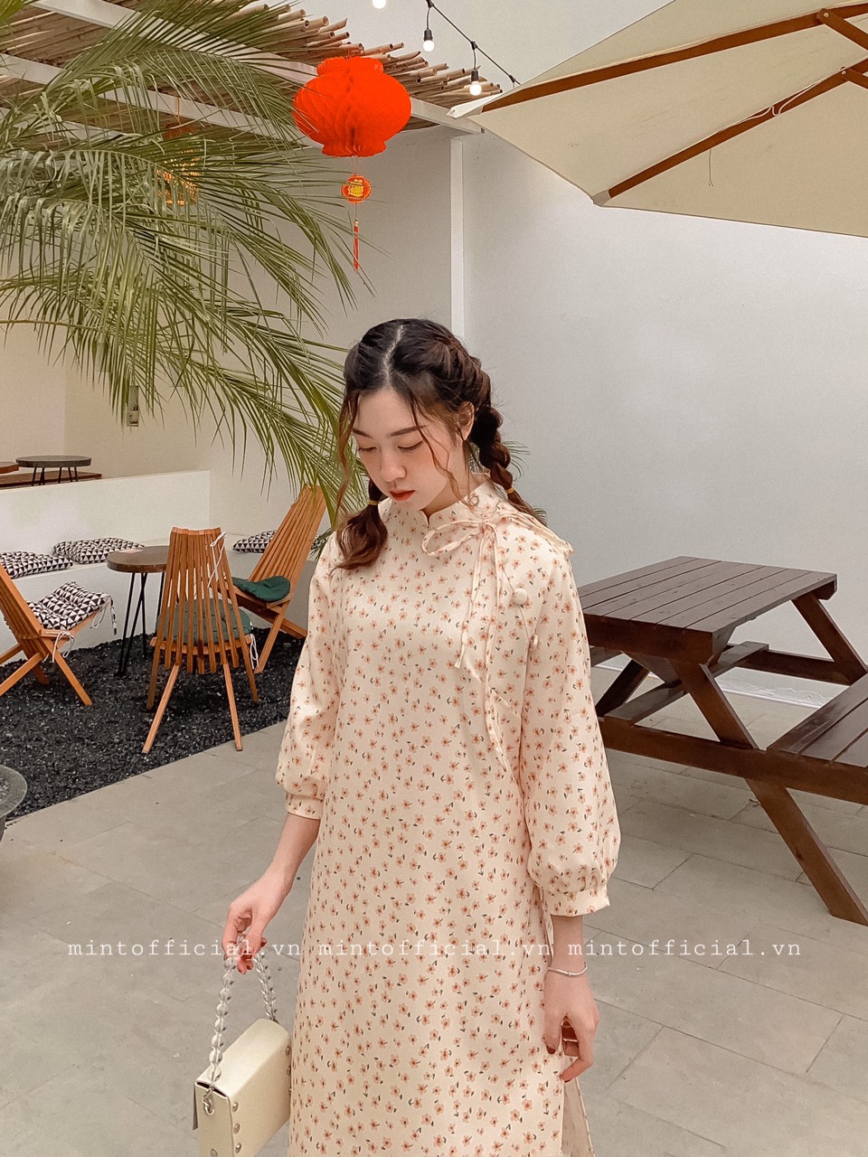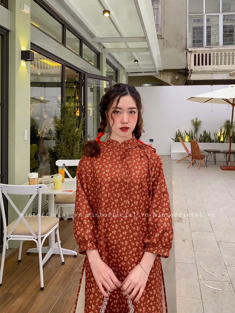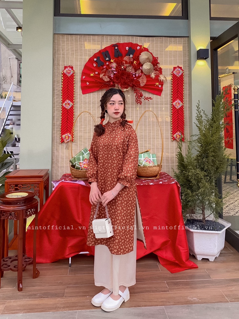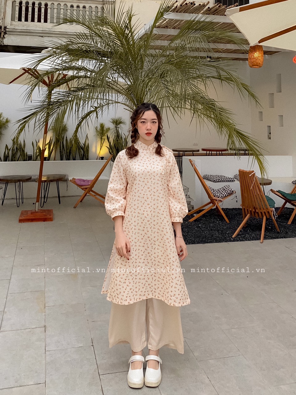 Đi kèm cùng cùng quần vải lụa hàn màu ngọc trai xinh. Đường may bên Mint thì luôn cẩn thận rùi cả nhà cứ yên tâm rinh áo dài xinh diện Tết