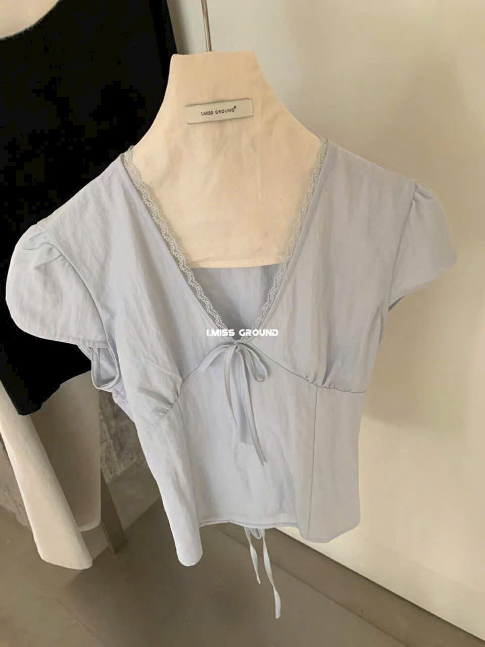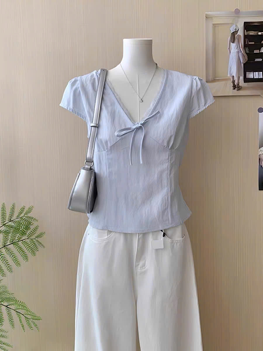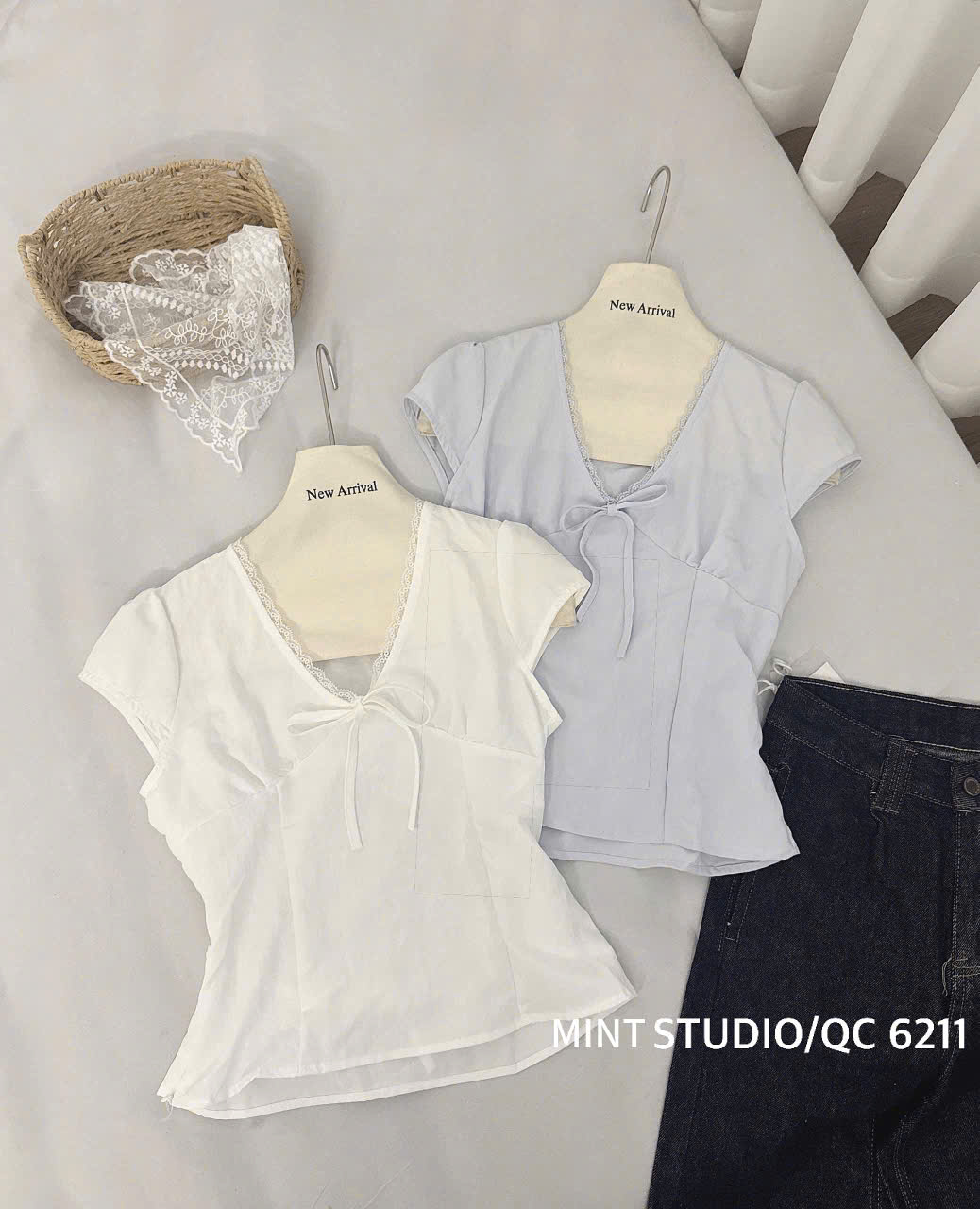 ÁO ĐŨI CỔ V VIỀN REN THẮT NƠ EO MÃ 6211