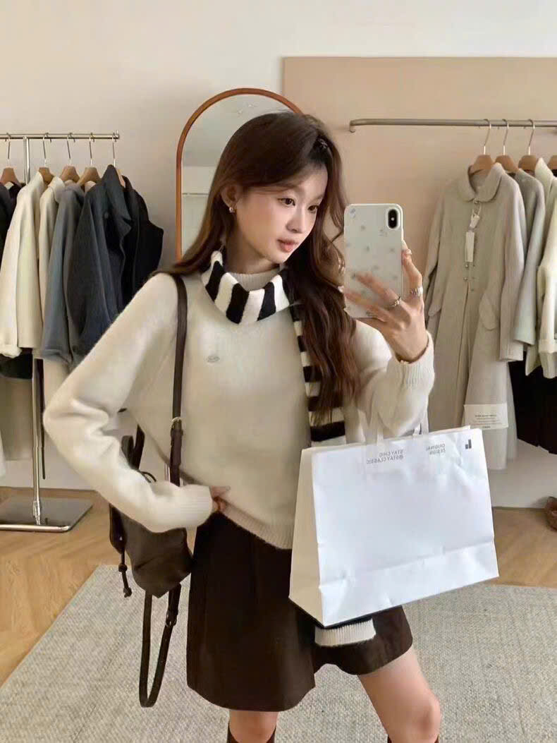 ÁO LEN ĐÍNH TAG KÈM KHĂN KẺ RỜI MÃ 965