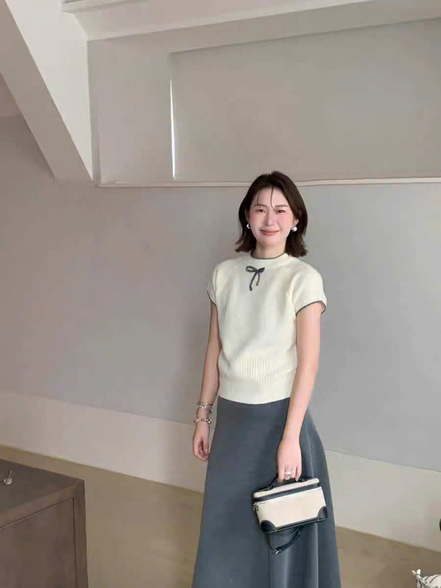 ÁO LEN CỘC DÀY ĐÍNH NƠ MÃ F565