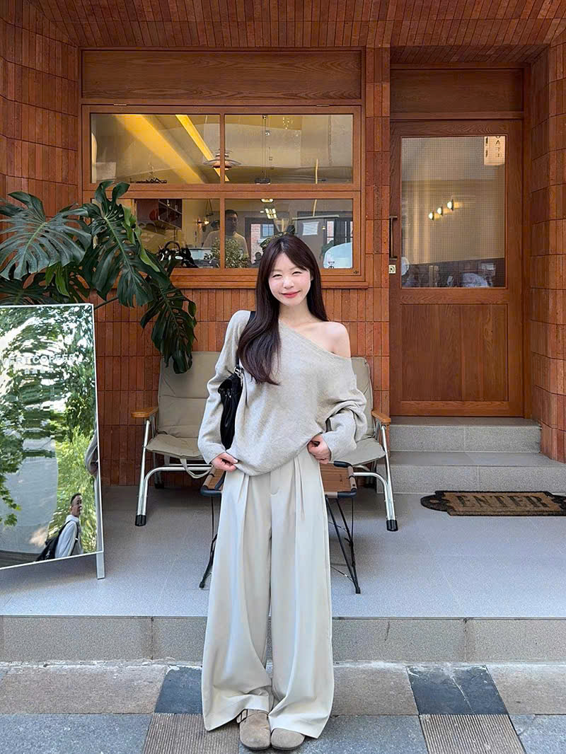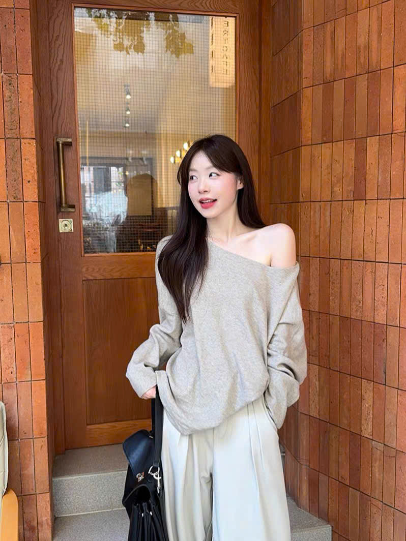 ÁO NỈ HÀN TRƠN LỆCH VAI MÃ 336