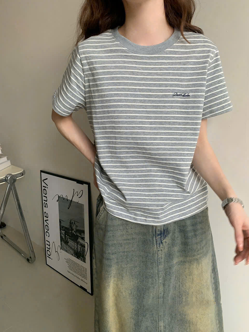 ÁO PHÔNG KẺ THÊU CHỮ MÃ 9602