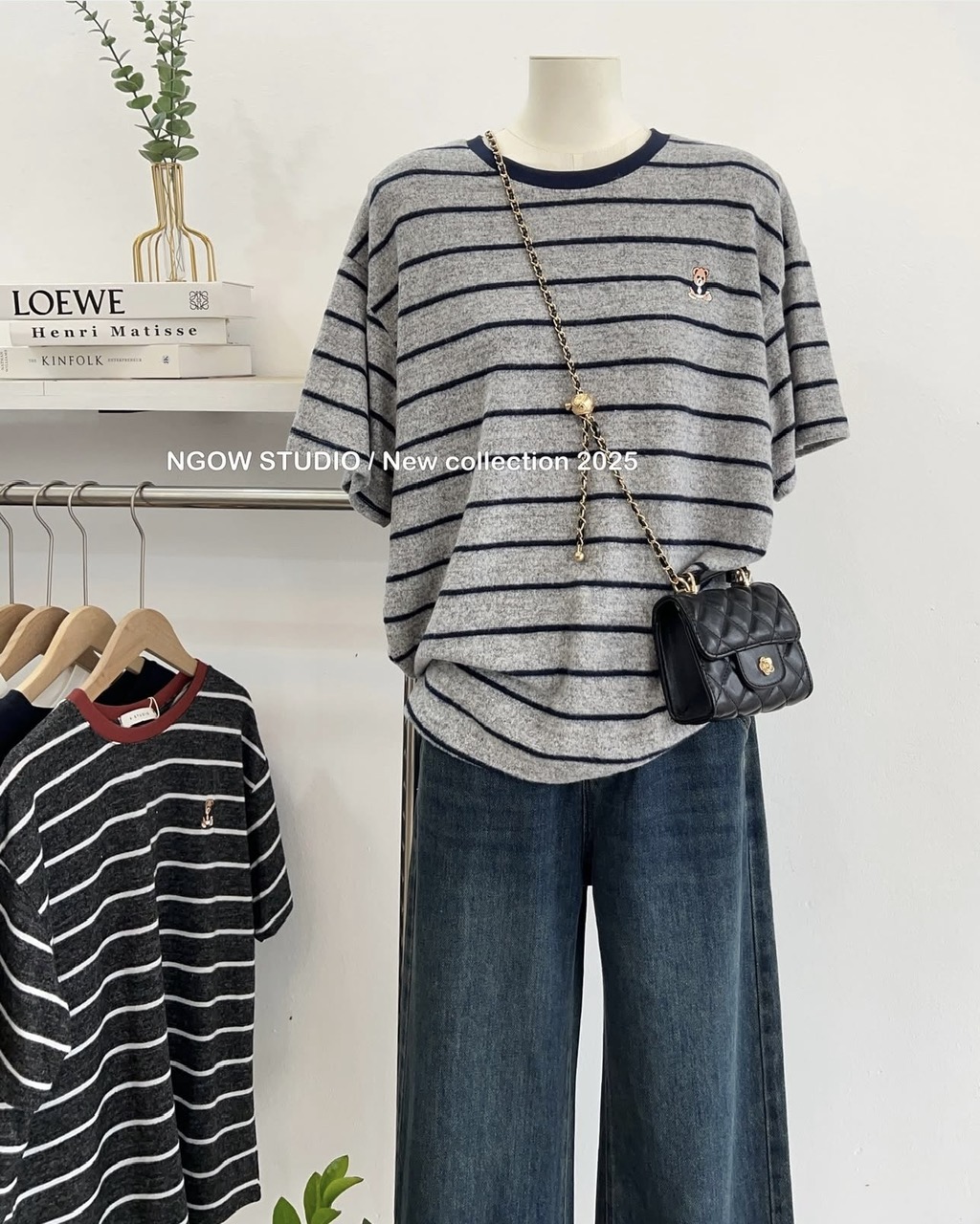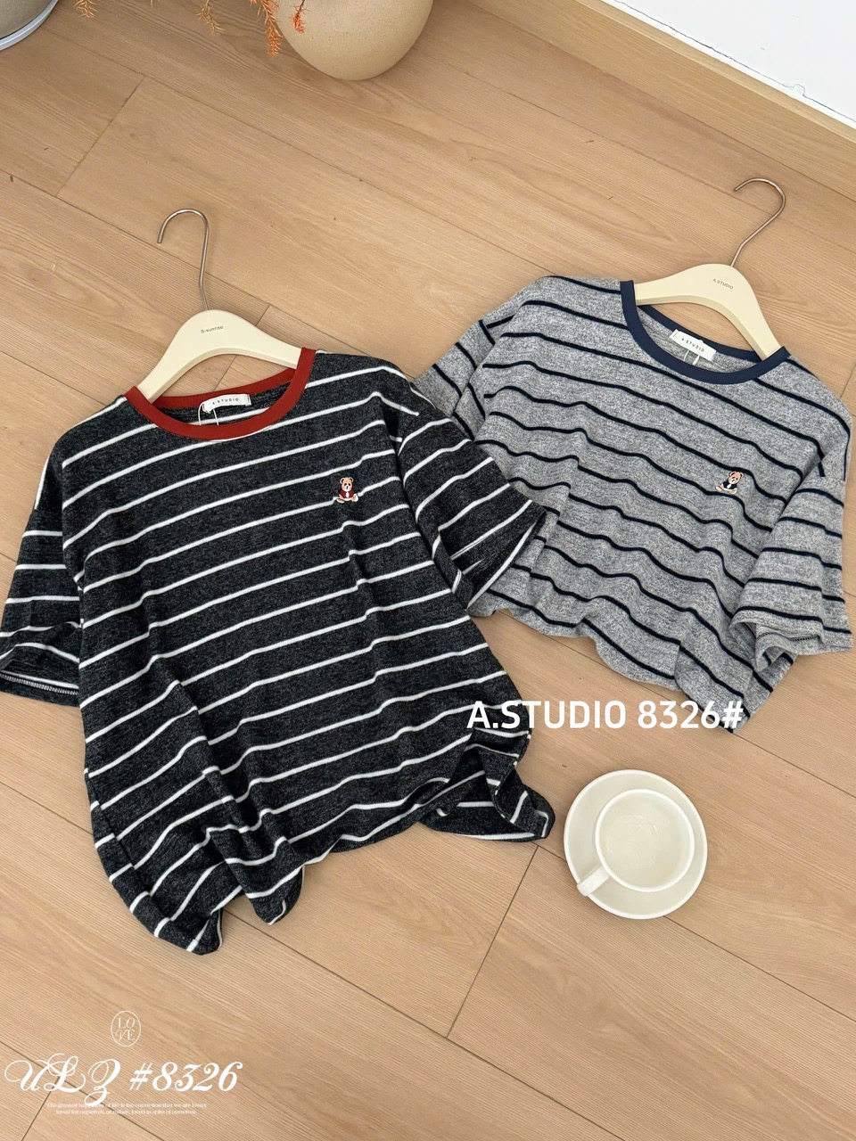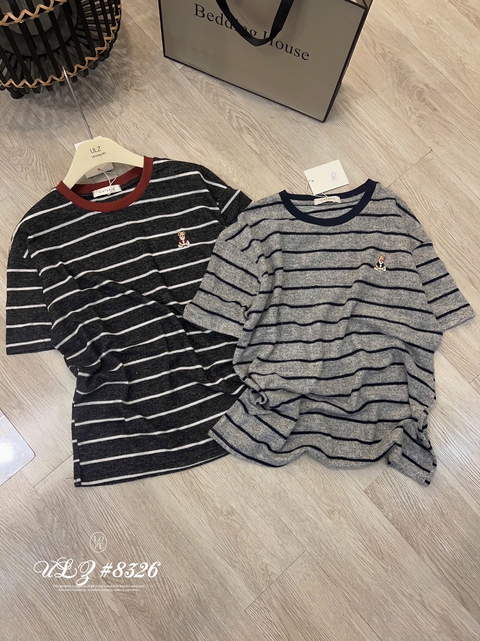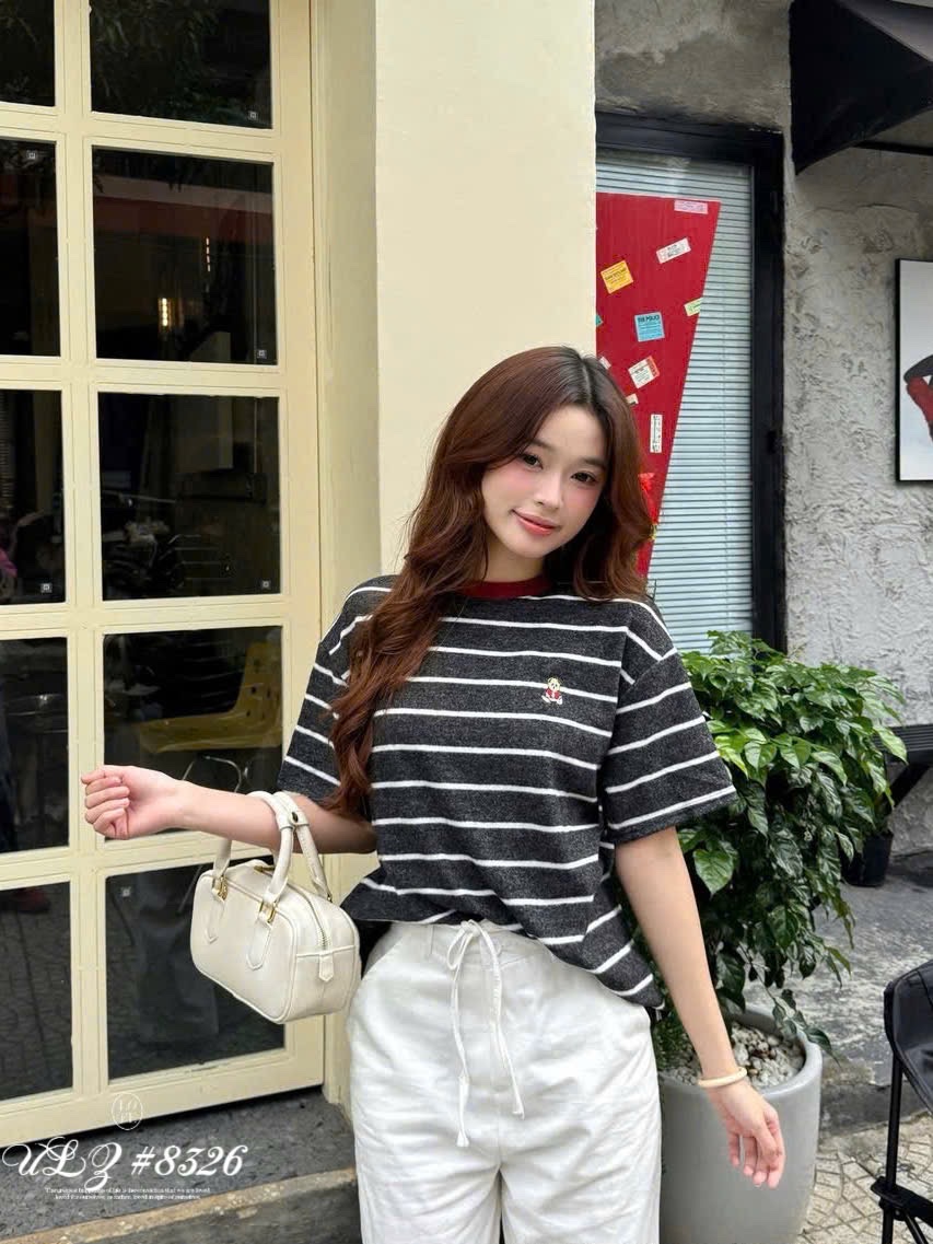 ÁO THUN LÔNG KẺ VIỀN THÊU GẤU MÃ 8326