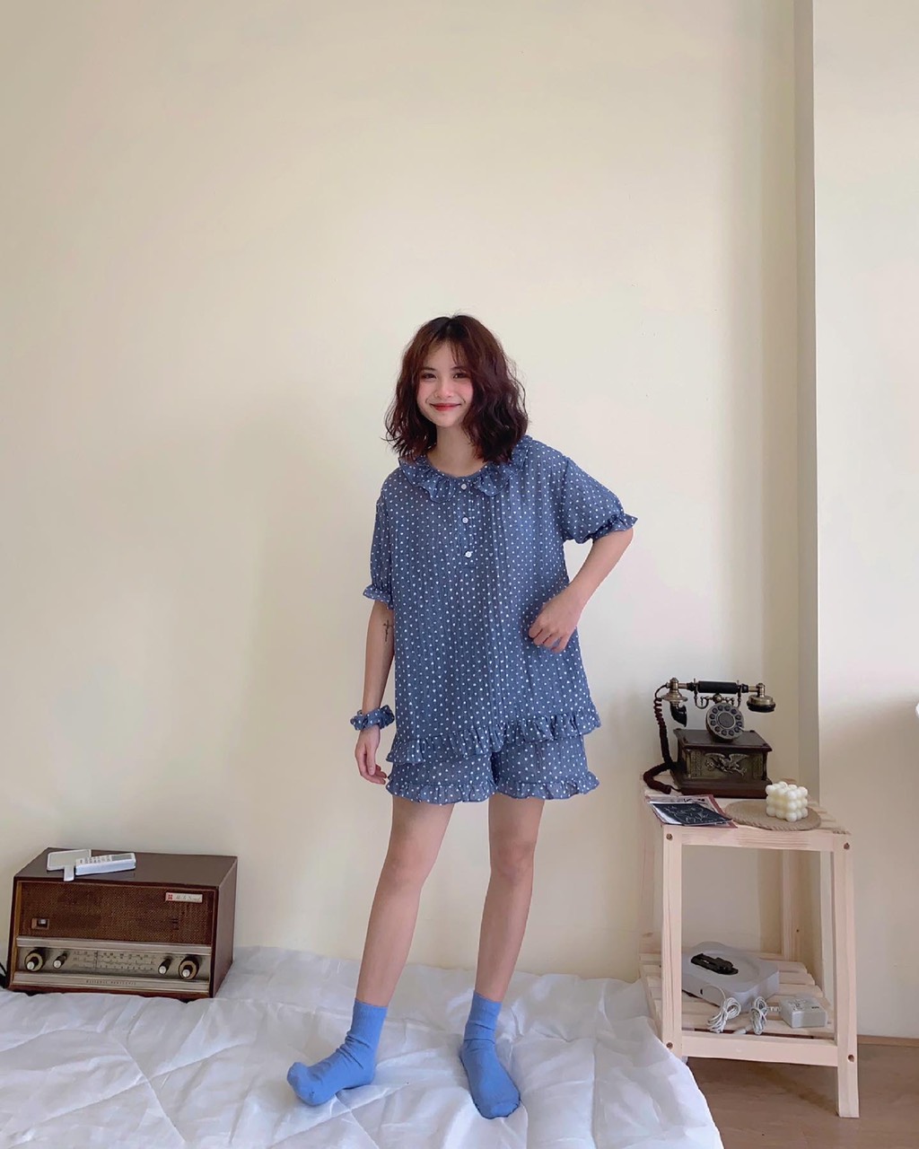 + S: Áo dài 65cm, rộng ngang 51cm / Quần dài 34cm, eo fit 96cm