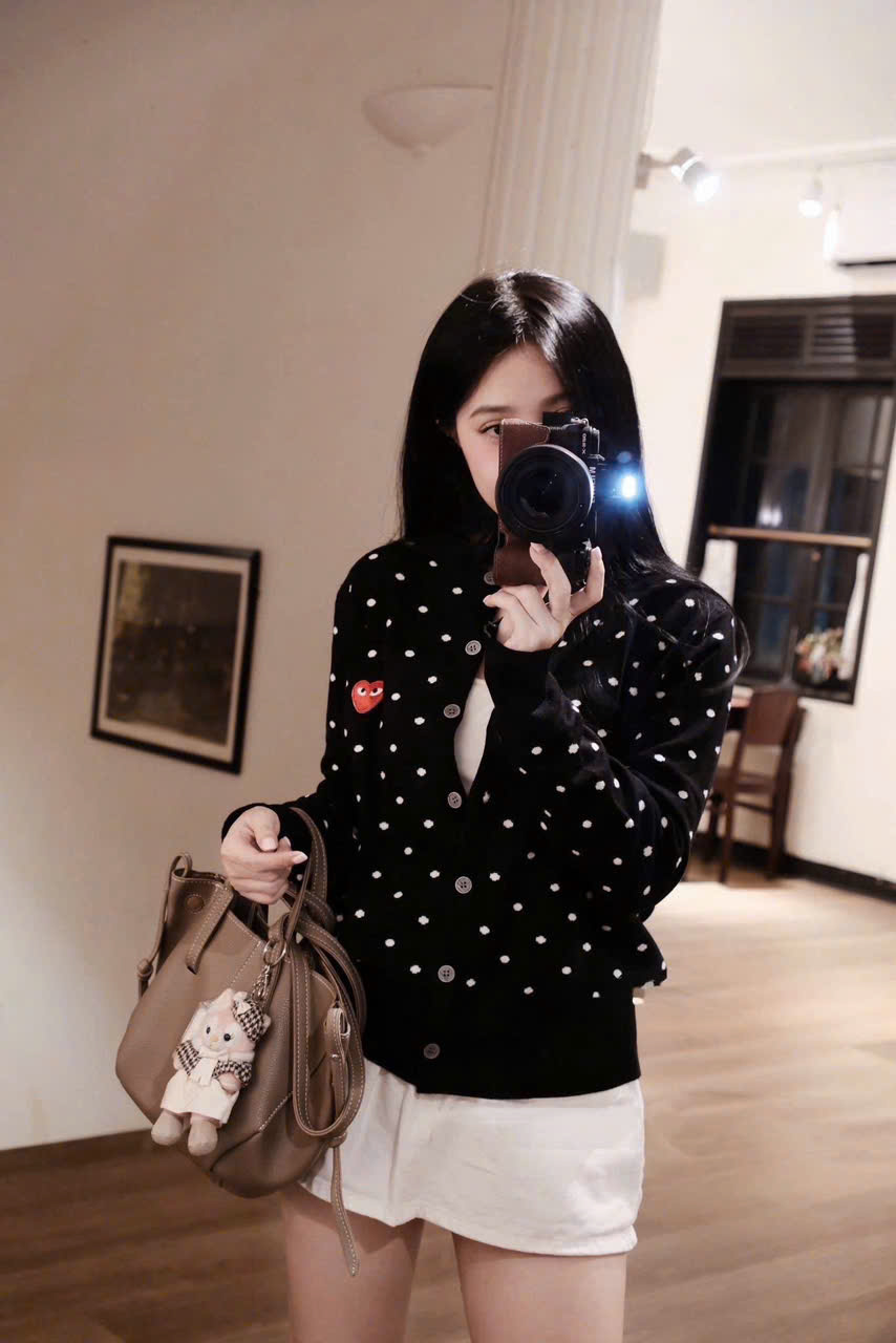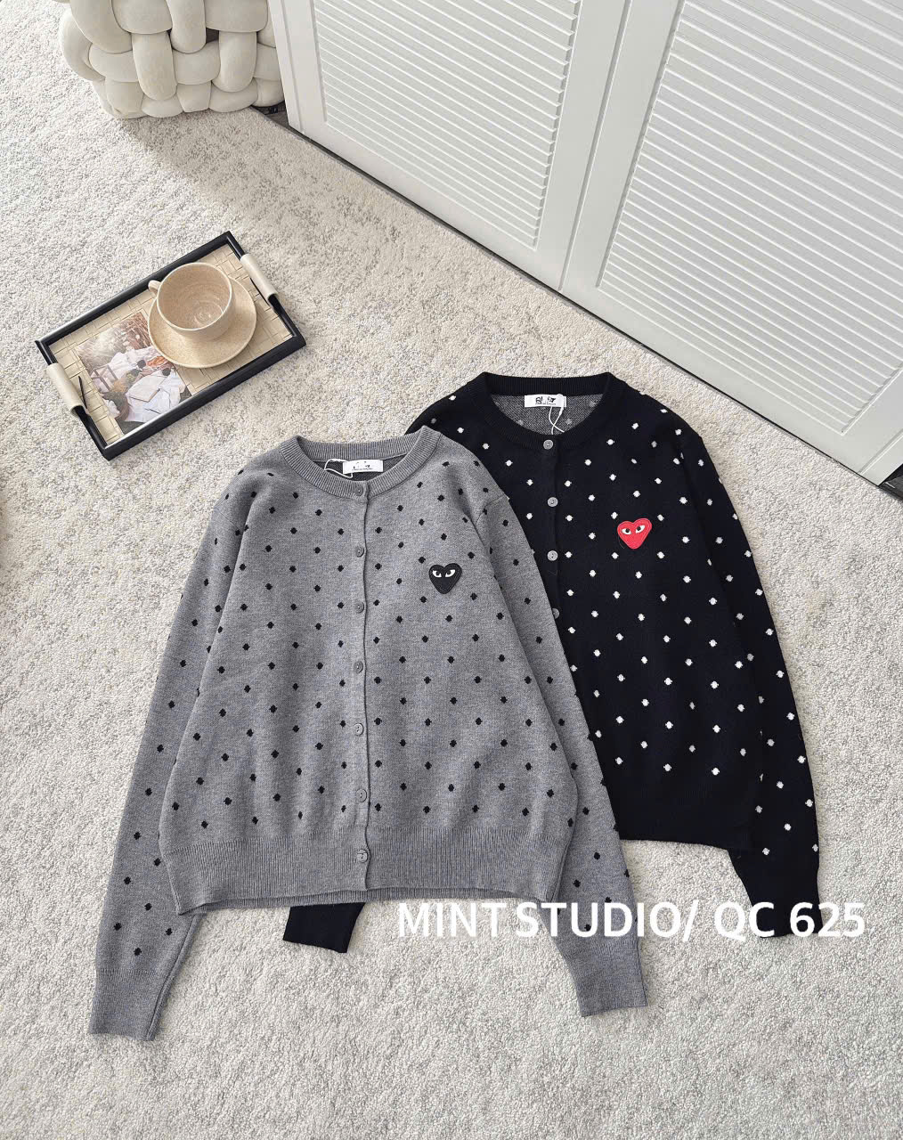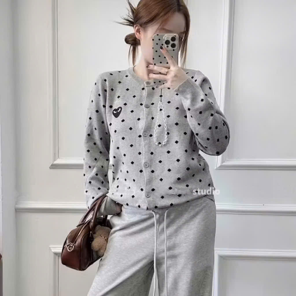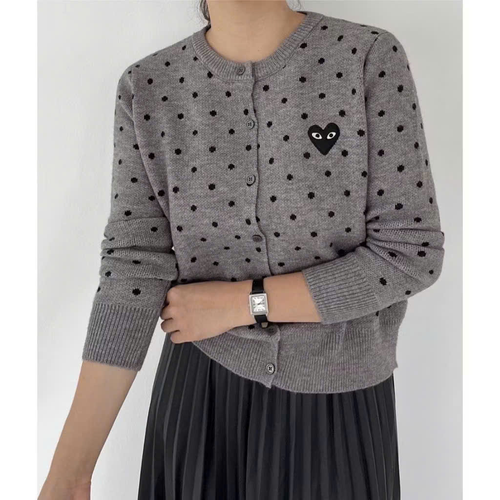 CARDIGAN MÃ 625 LEN CHẤM BI THÊU TIM