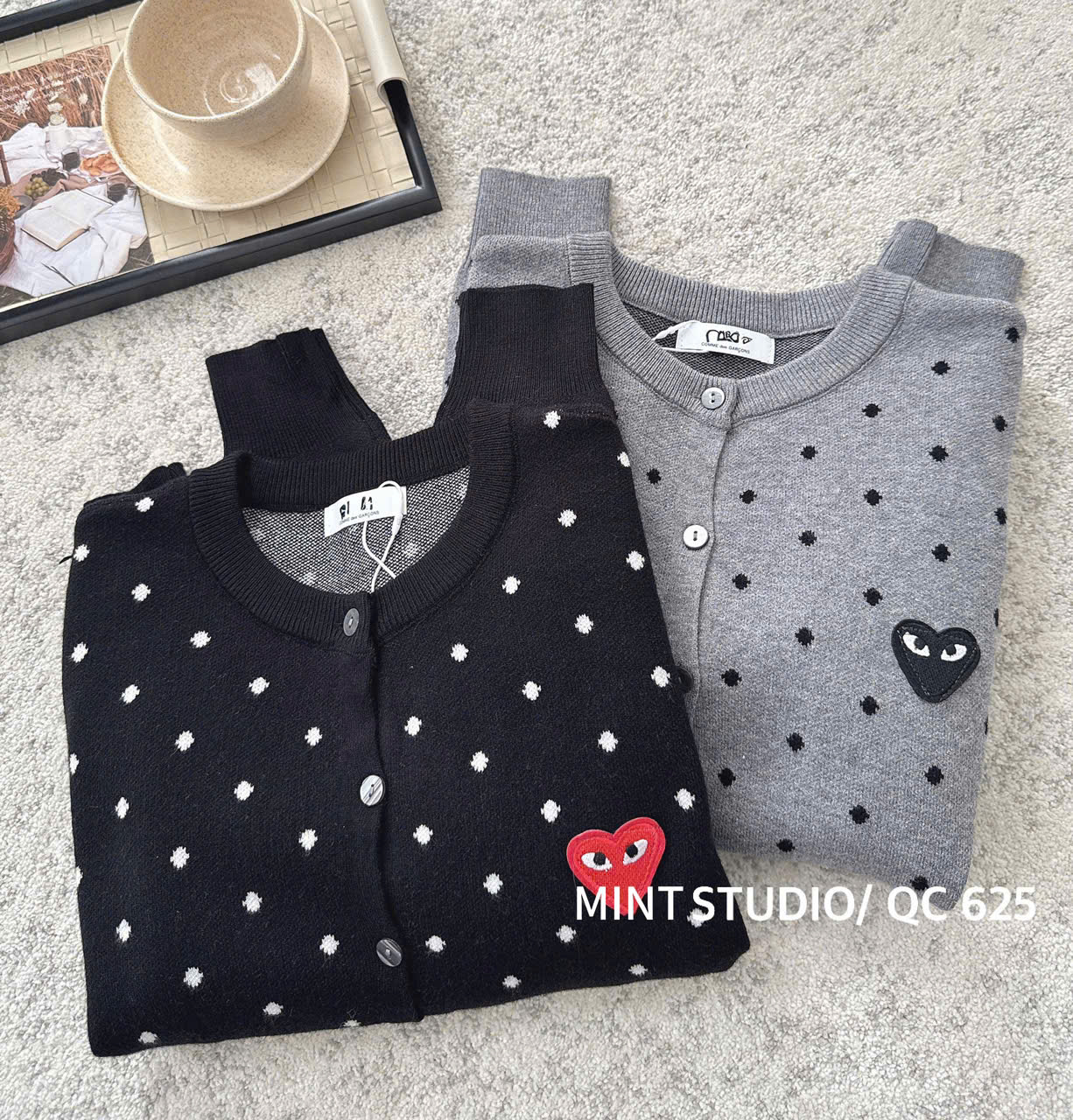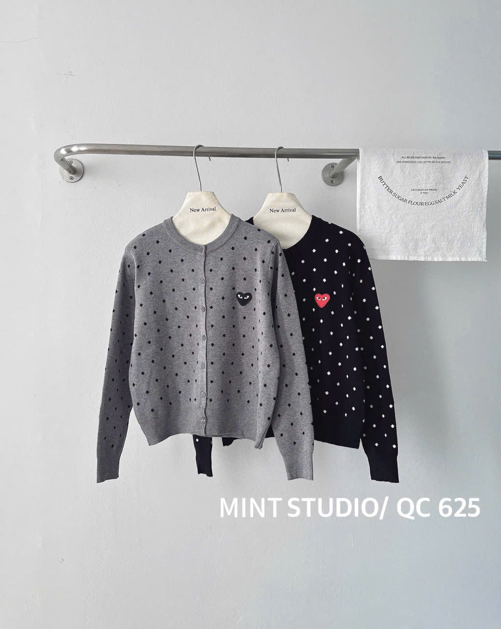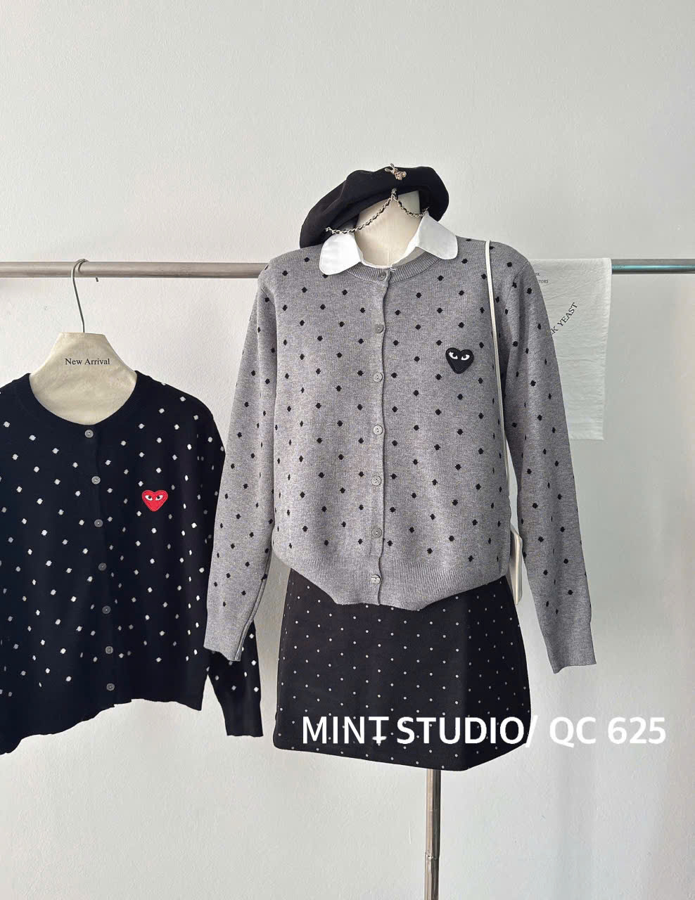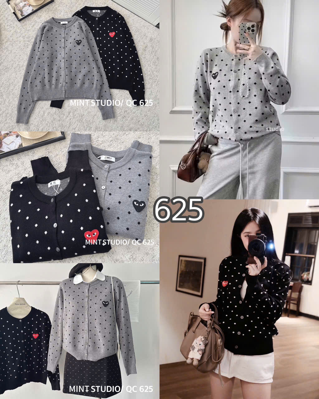 CARDIGAN MÃ 625 LEN CHẤM BI THÊU TIM