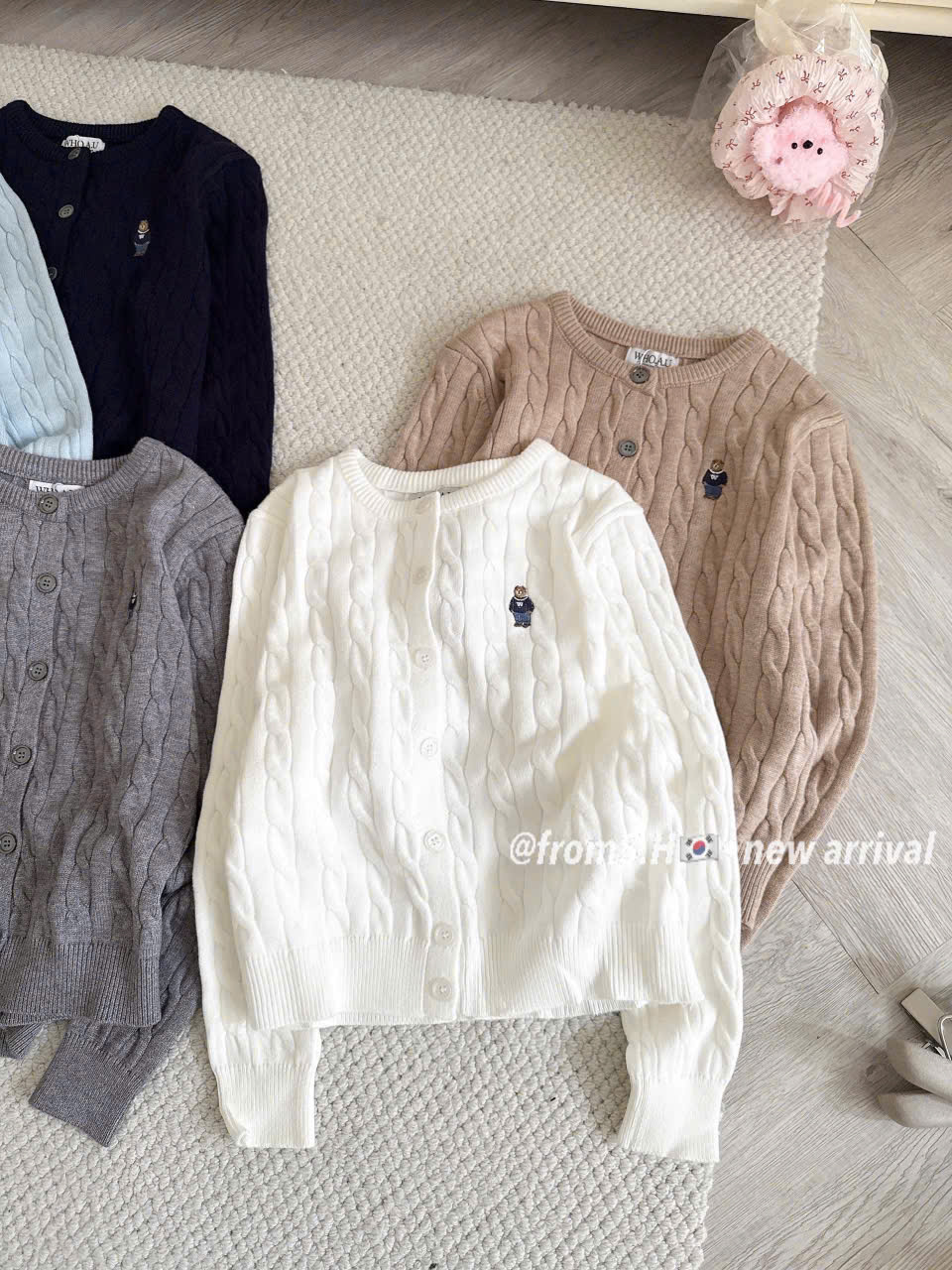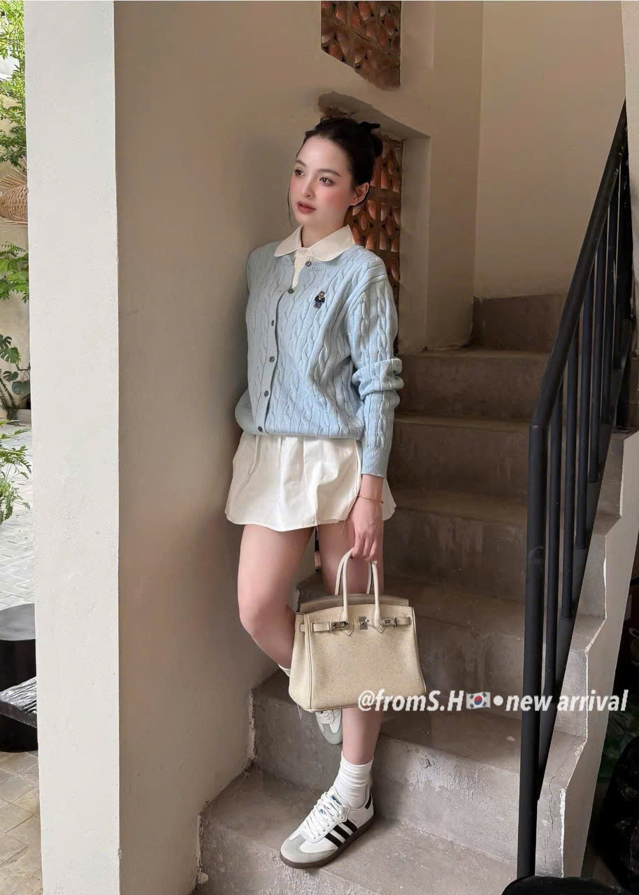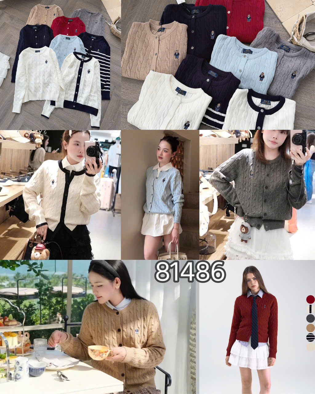 CARDIGAN MÃ 81486 LEN VẶN THỪNG THÊU GẤU