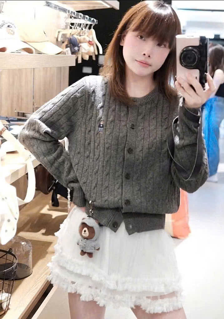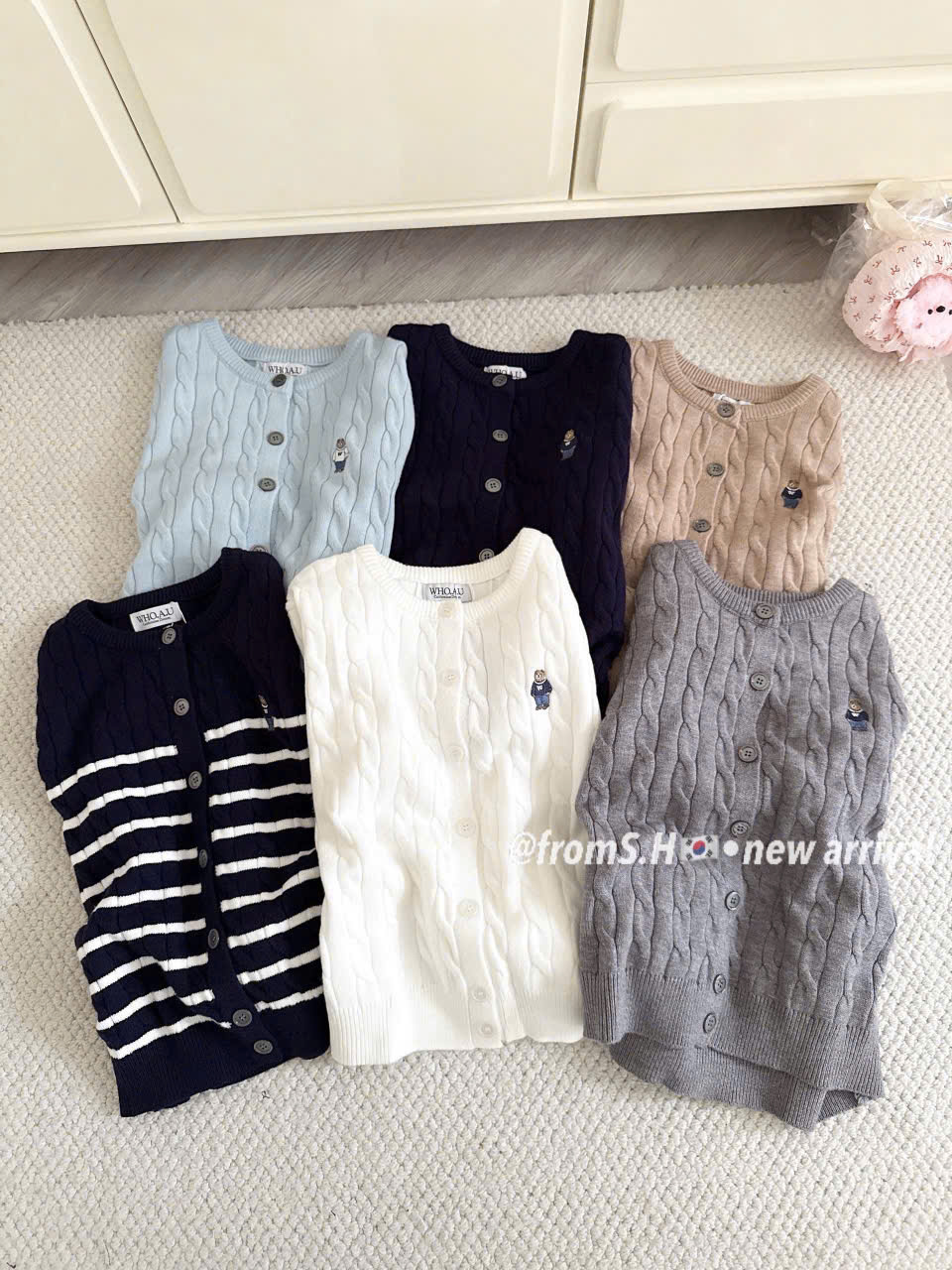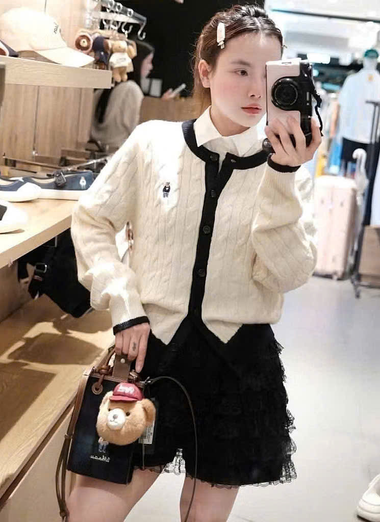 CARDIGAN MÃ 81486 LEN VẶN THỪNG THÊU GẤU