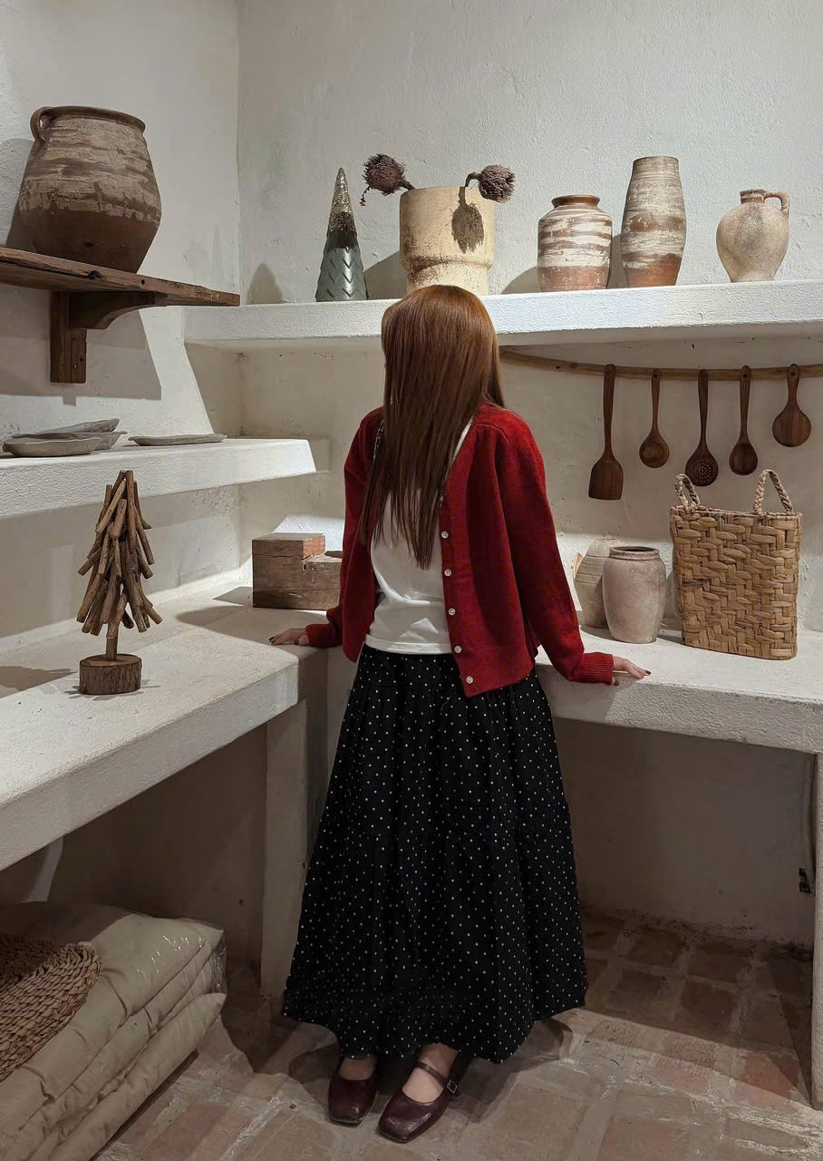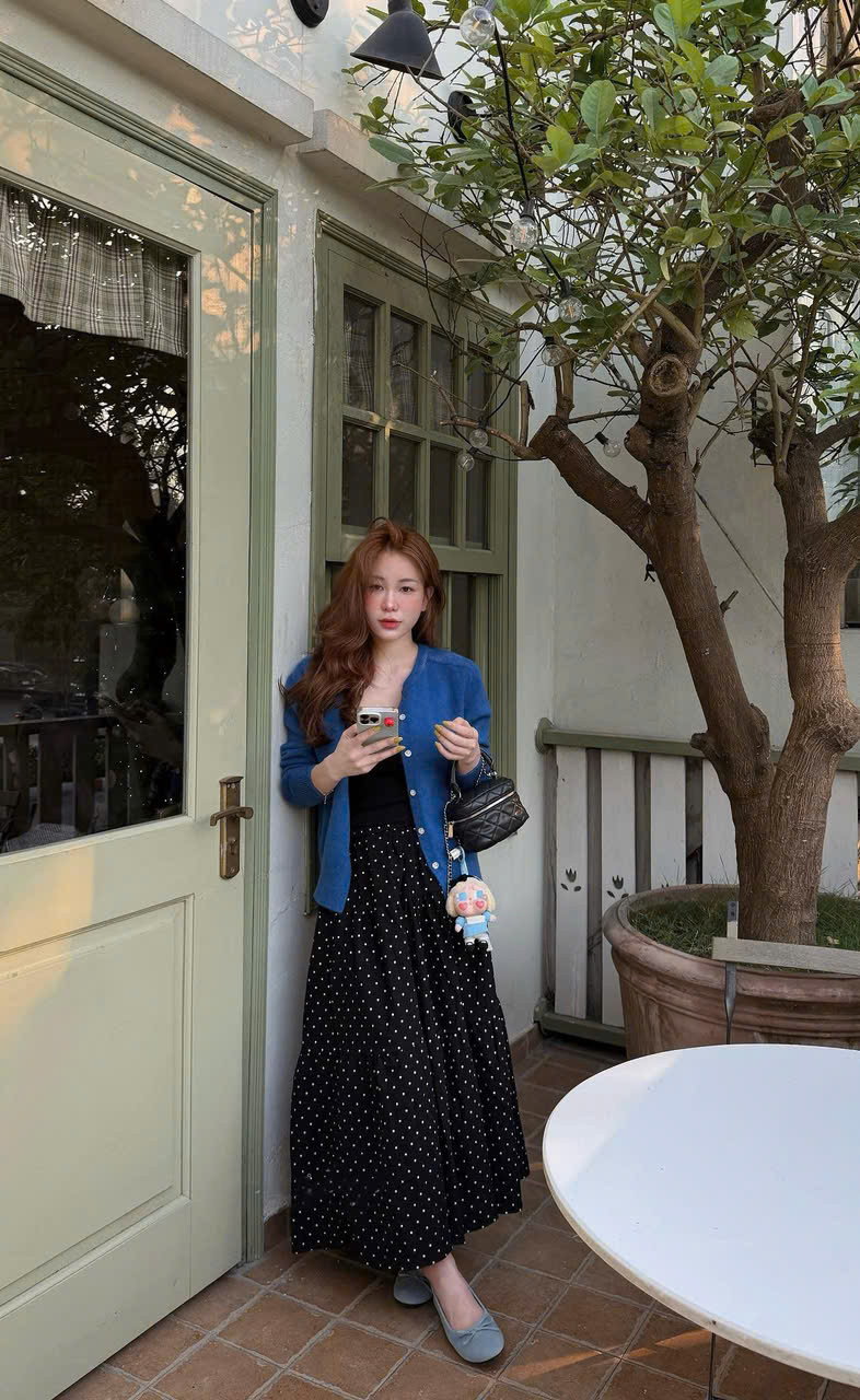 - VÁY CHẤM BI : DÀI 85 CM , EO FIT < 90 , MÔNG FIT < 120