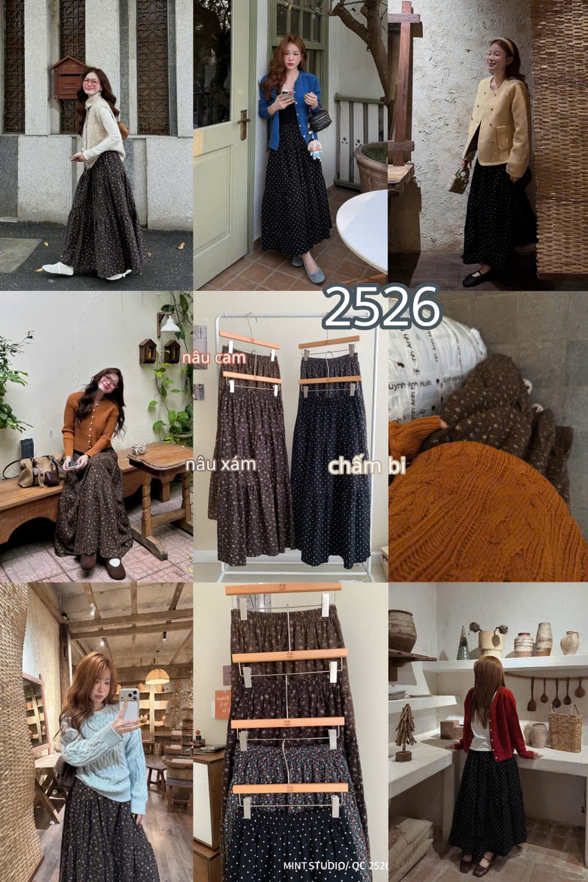 - CHÂN VÁY DÀI HOA NHÍ CHẤM BI MÃ 2526