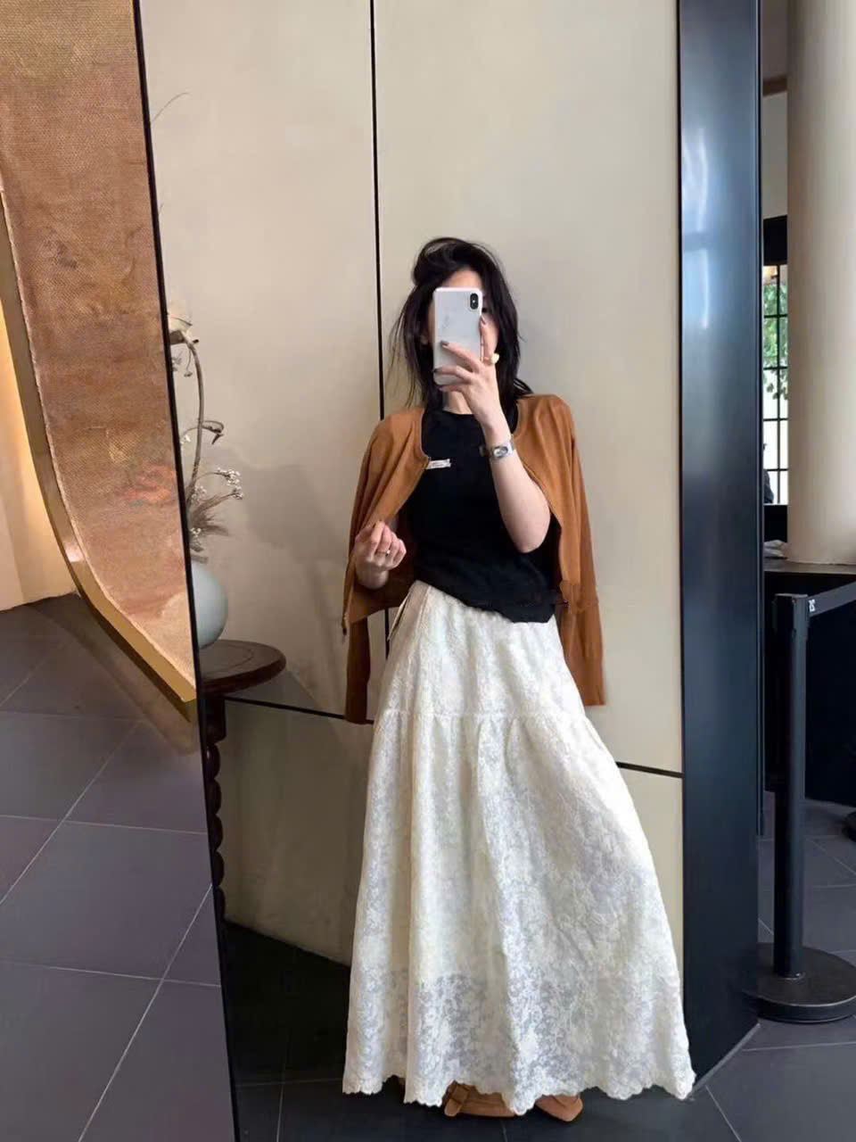 CHÂN VÁY DÀI HOA THÊU REN MÃ LA211