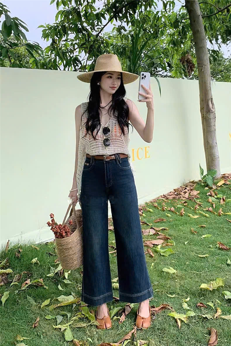 Size S: dài 98cm, eo fit<68, mông fit<90, rộng đùi 28cm, rộng ống 25cm