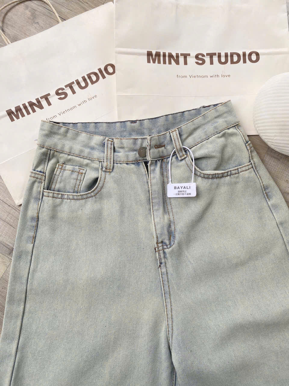 M: dài 96cm, eo fit<68, mông fit<90, rộng đùi 28cm ,rộng ống 25cm