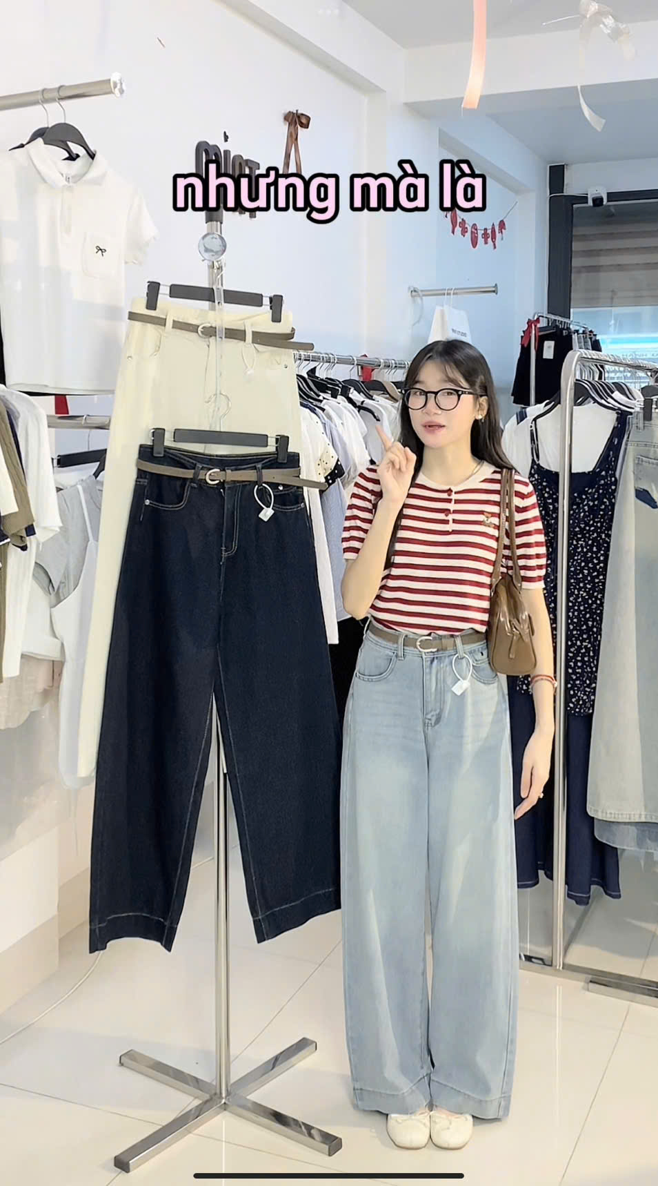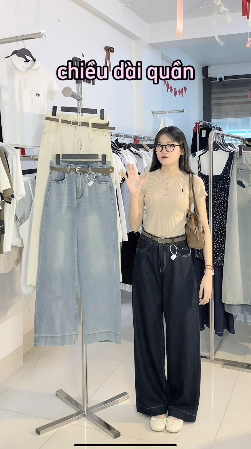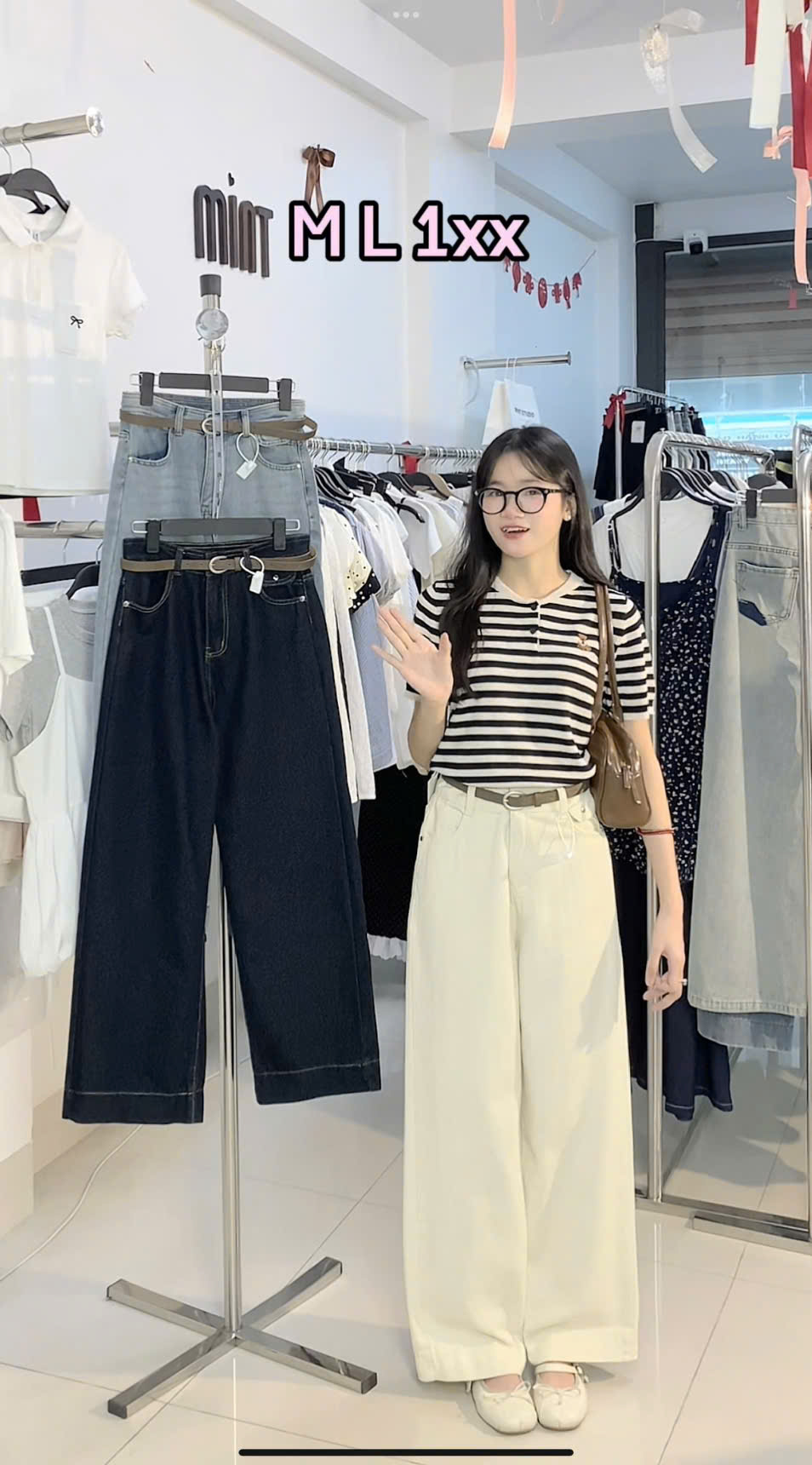 - S : dài 95 cm, eo fit<68, rộng đùi 30cm, mông fit<96, ống quần rộng 25cm