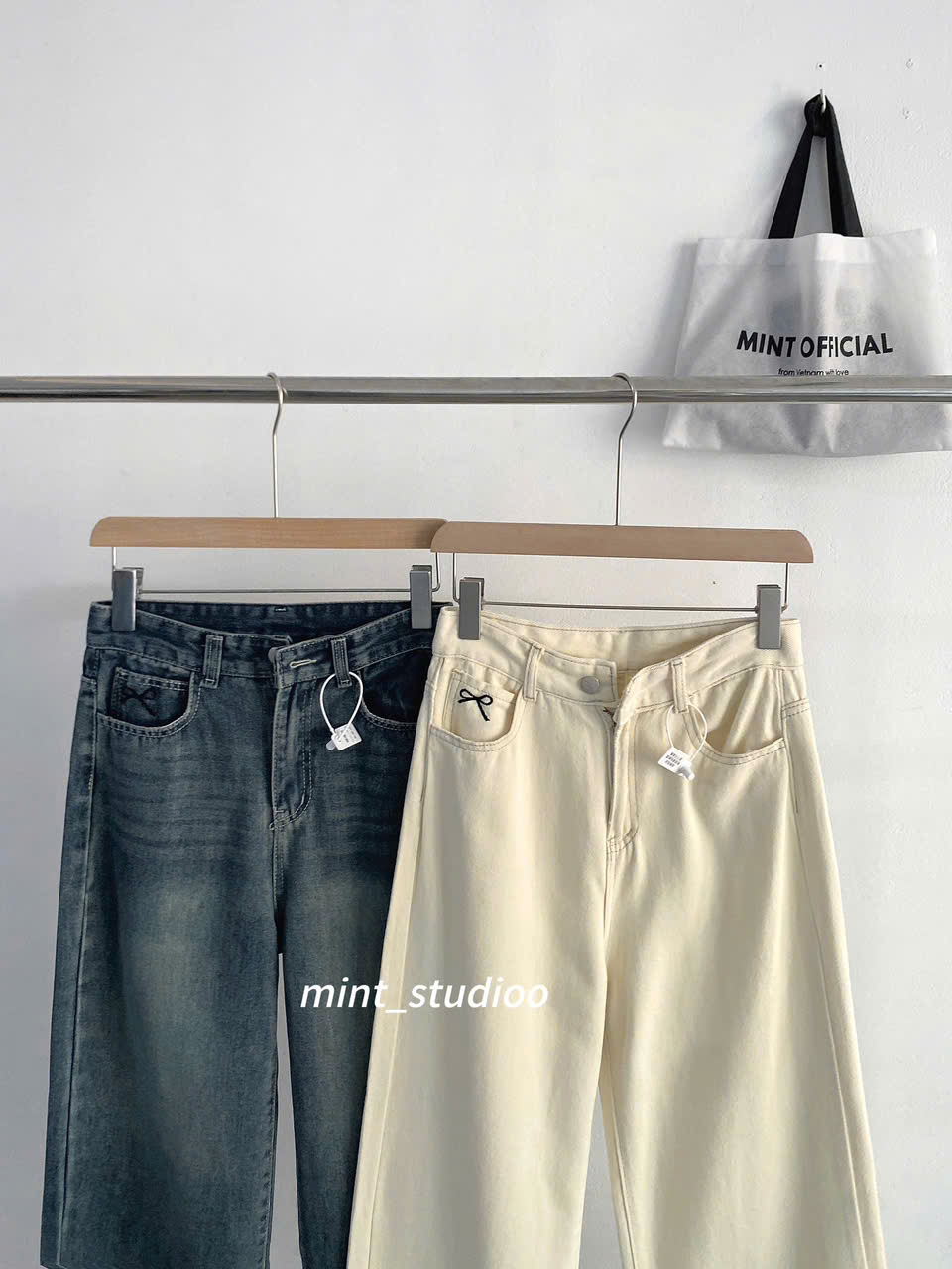 - M : Dài 97cm, eo fit<68, mông fit<98, rộng đùi 29cm, ống 25cm