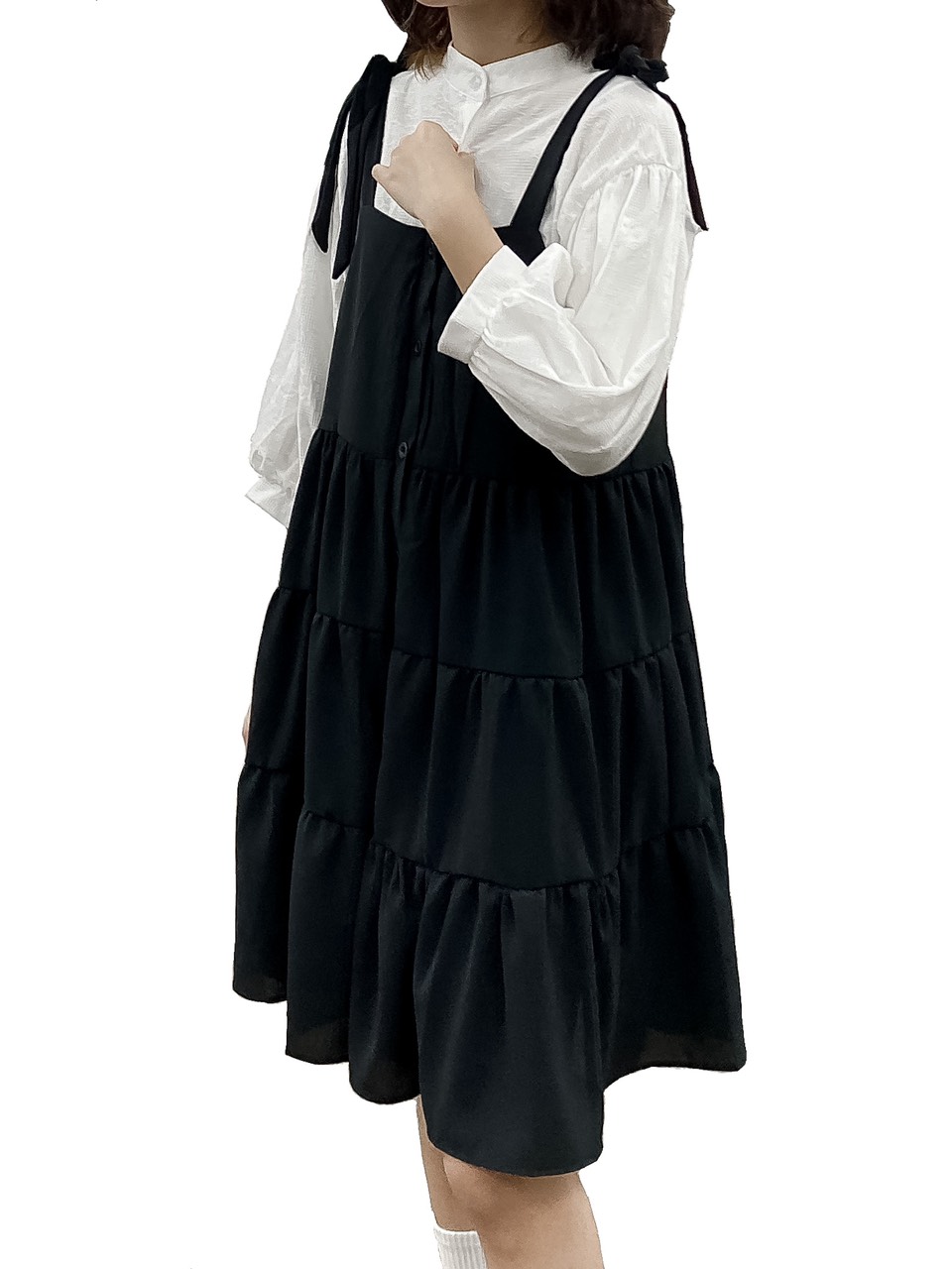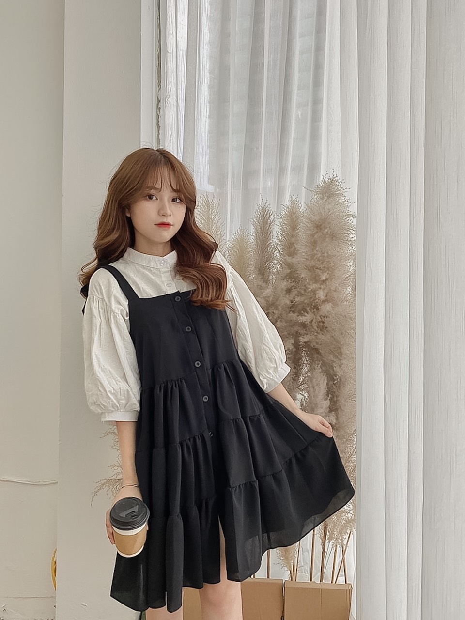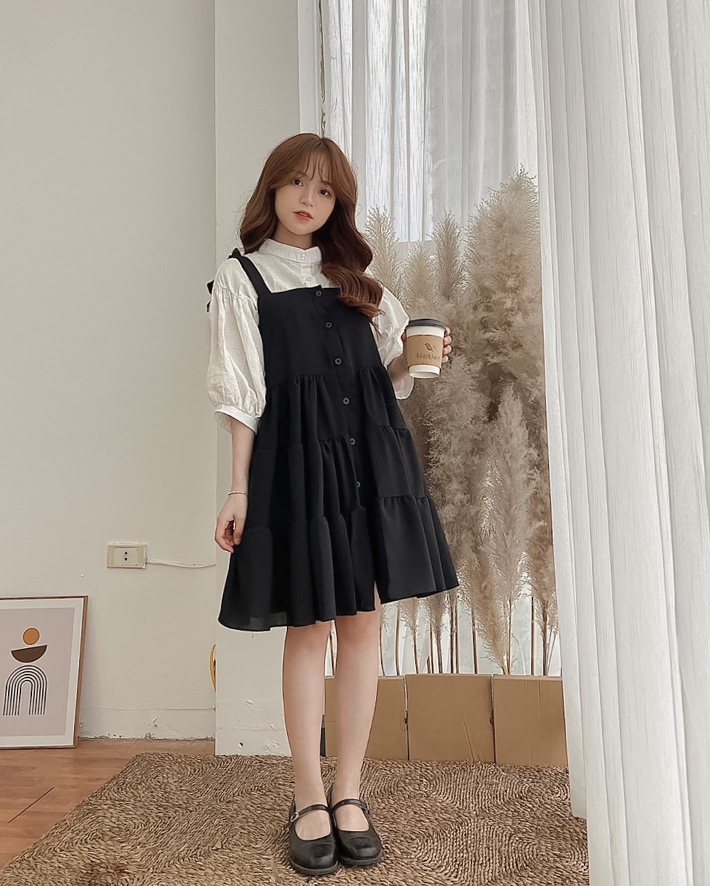 ➖ Yếm váy thắt nơ tự điều chỉnh, nút cúc trước, vải lanh dày dặn mềm mát có lót trong, form rộng thoải mái