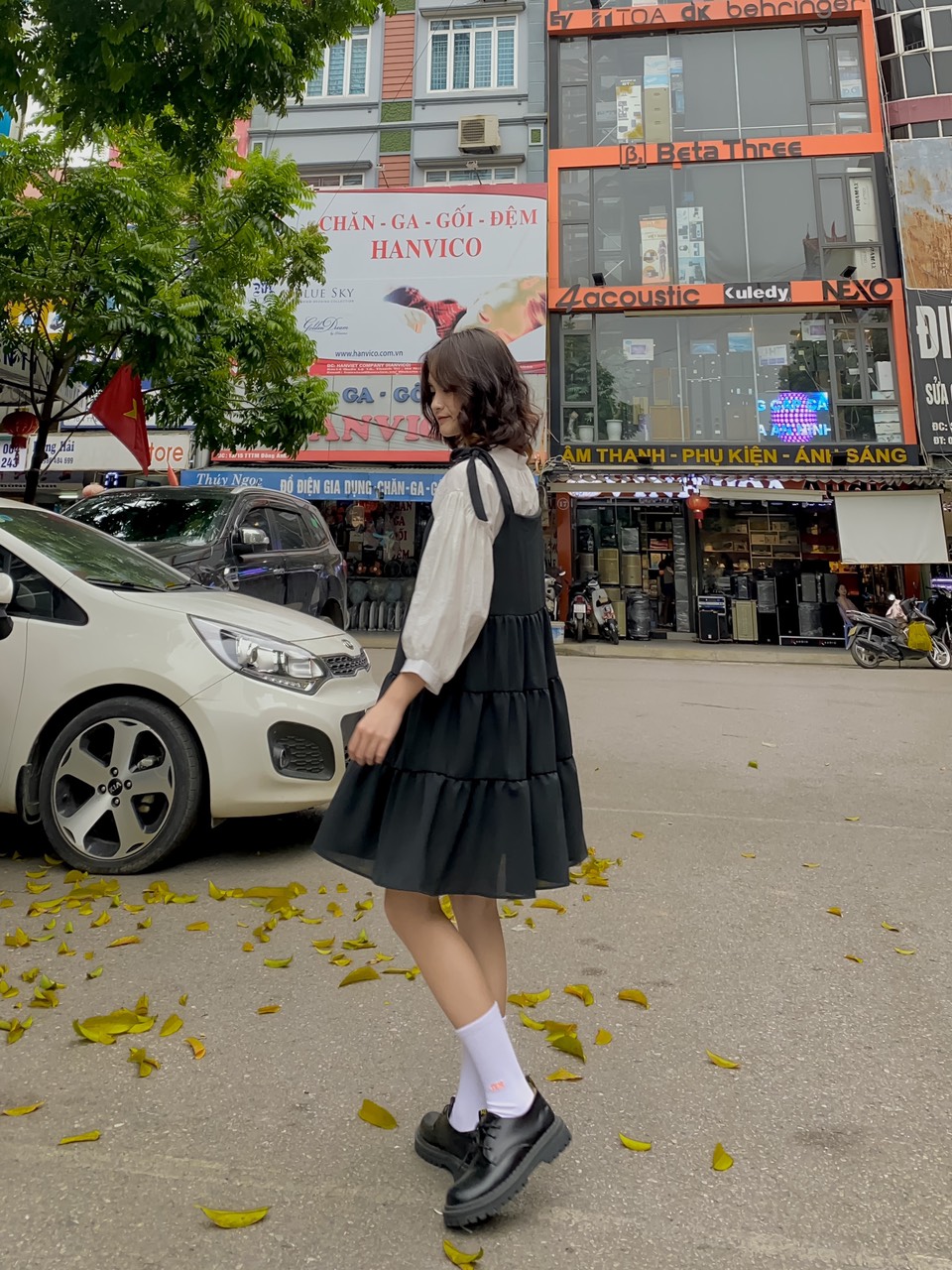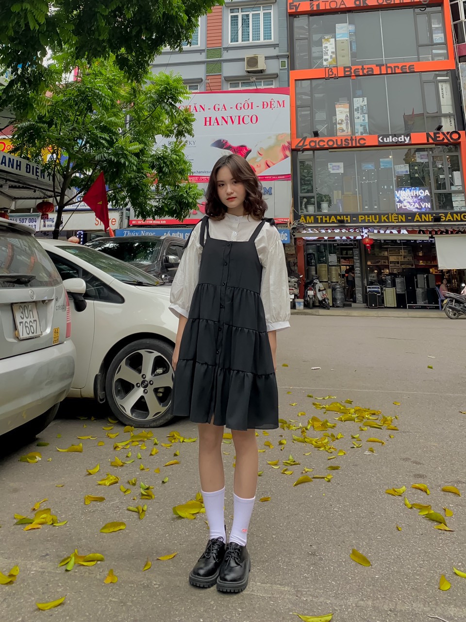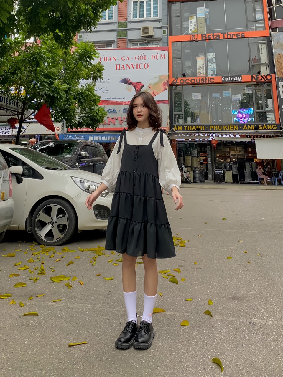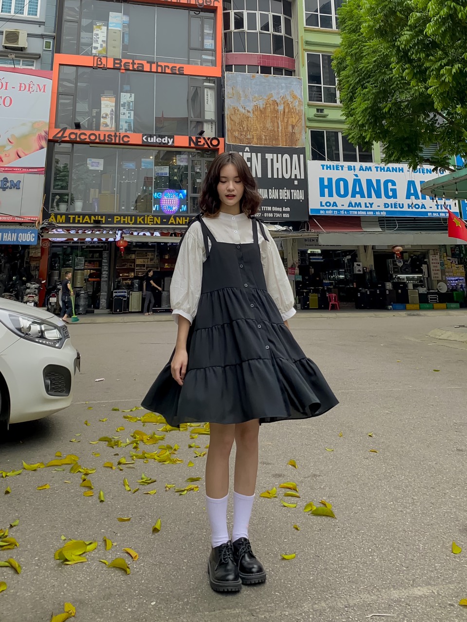 ➖ Yếm váy thắt nơ tự điều chỉnh, nút cúc trước, vải lanh dày dặn mềm mát có lót trong, form rộng thoải mái