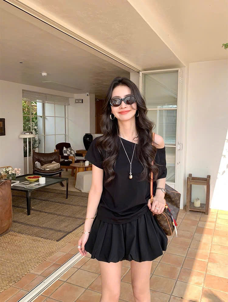 Chân váy: dài 30cm, eo fit<88, mông fit<100