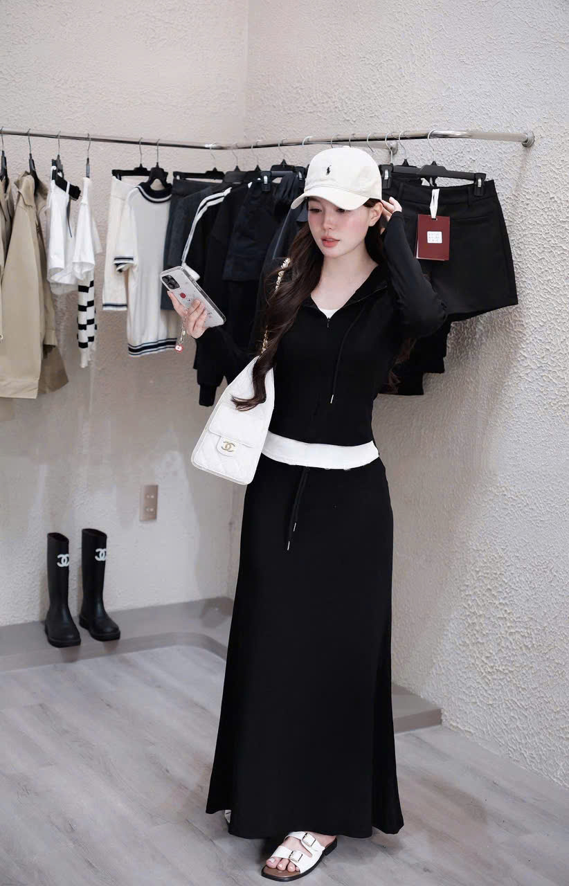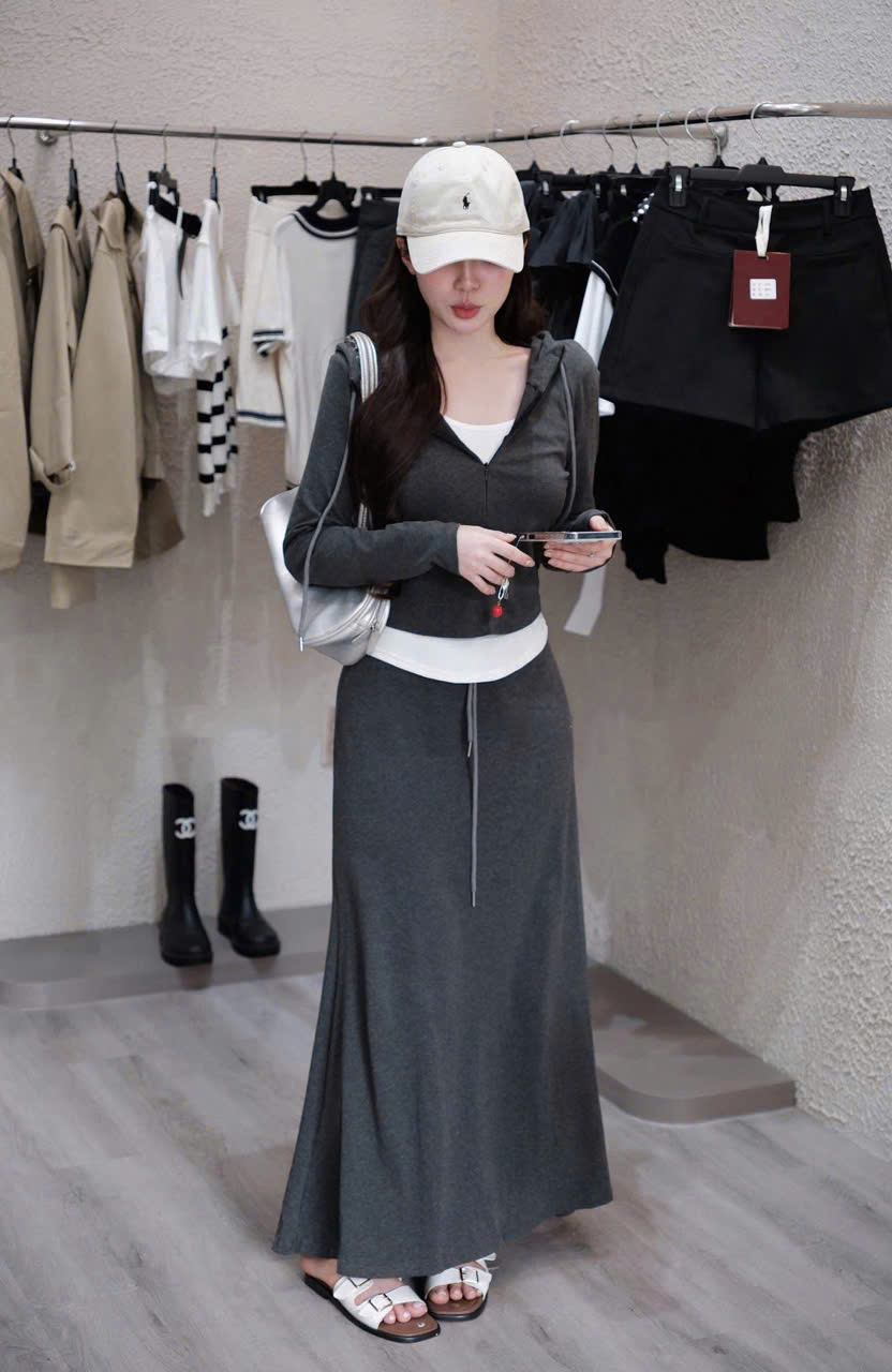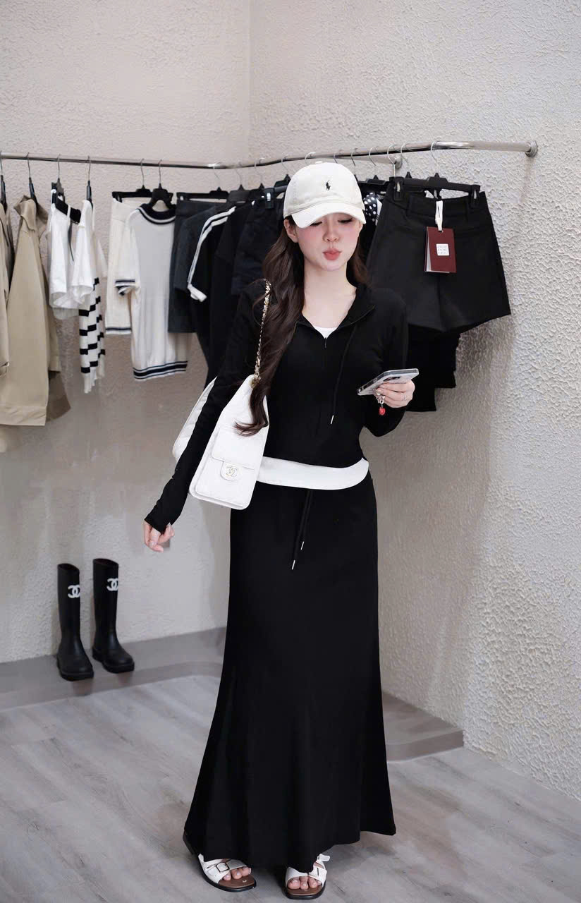 Chân váy: dài 86cm , eo fit<80, mông fit<110