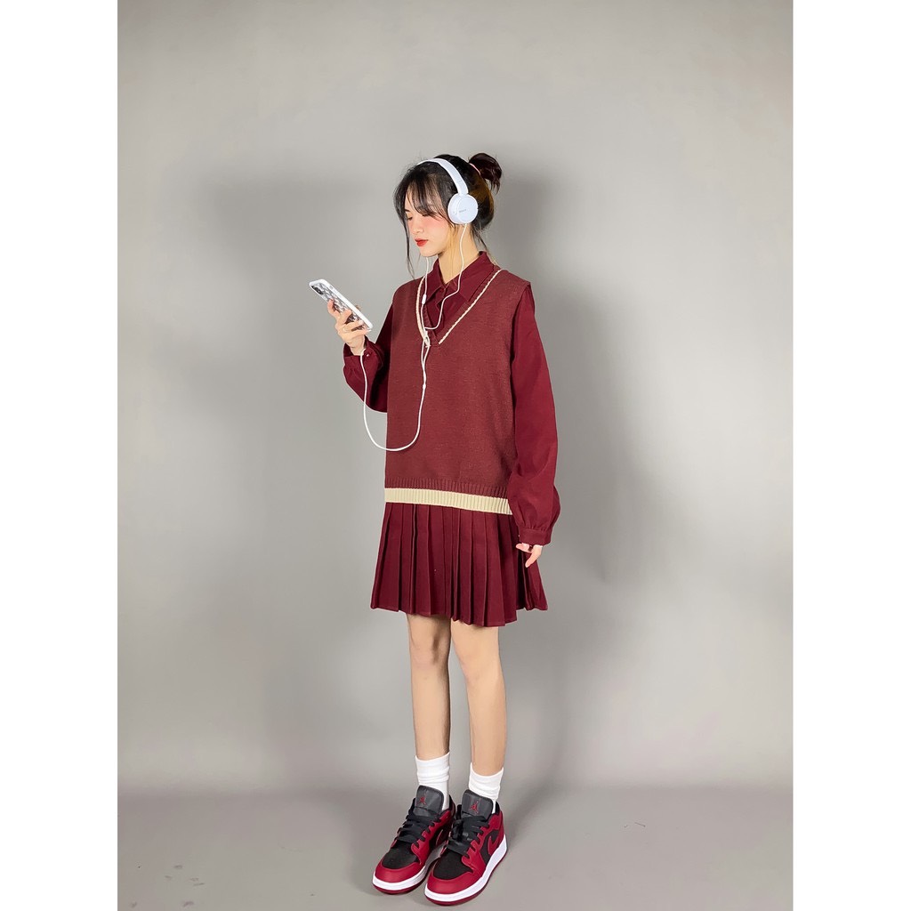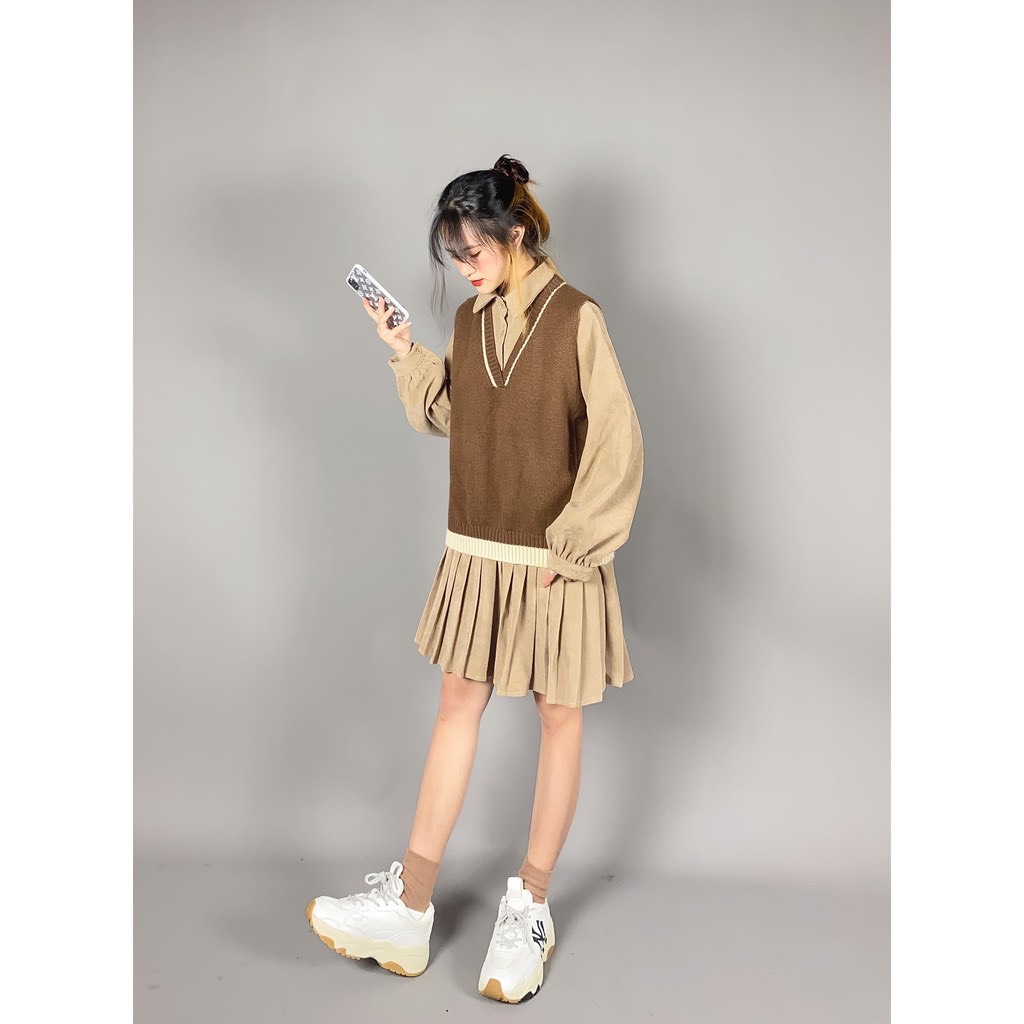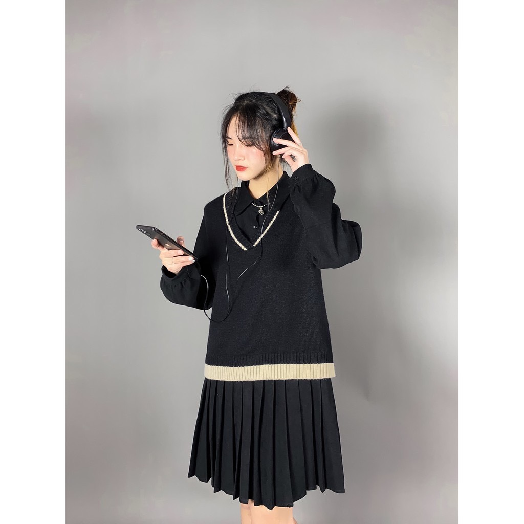 ➖Áo gile len mix kèm vải dày dặn, viền be xinh iu, form rộng freesize