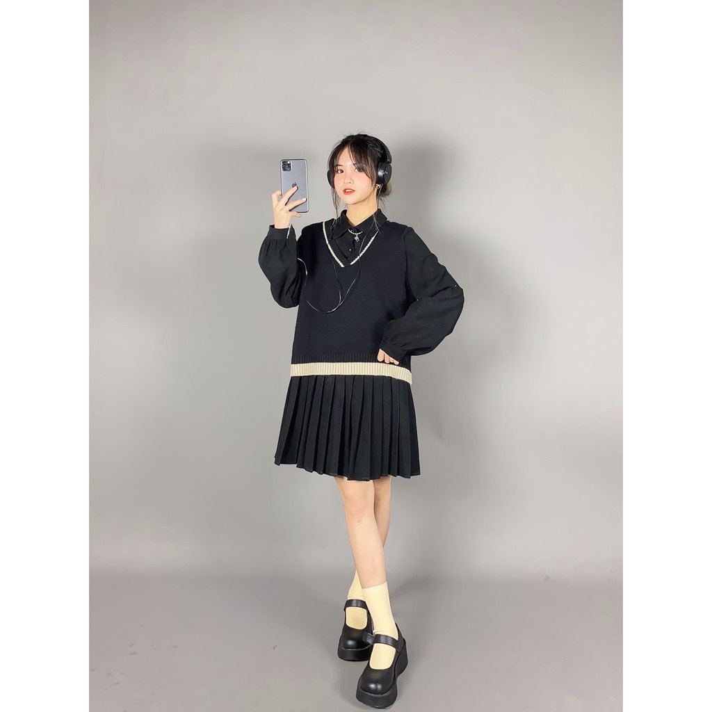 ➖ Set xinh gồm váy polo gân xếp li, form xoè xinh xắn, form rộng thoải mái. Freesize