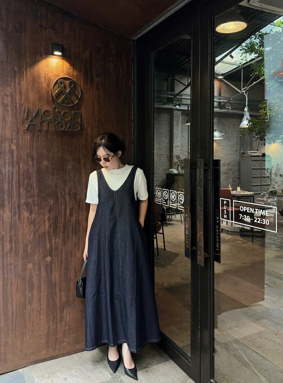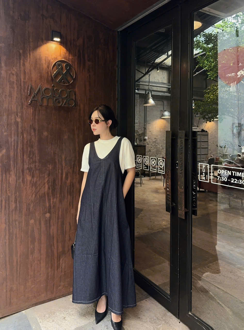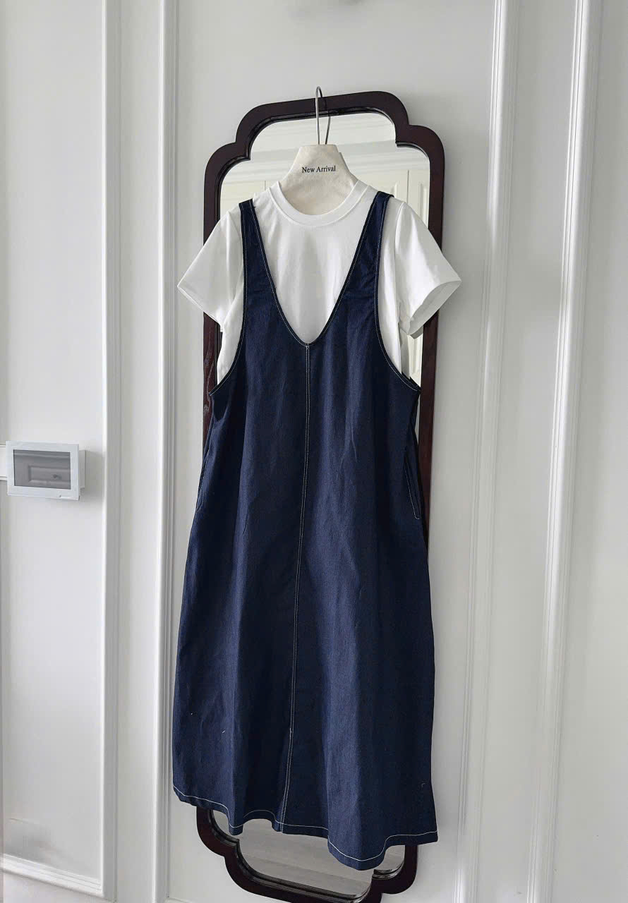 Váy yếm: dài 128cm , eo fit<108cm, mông fit<120