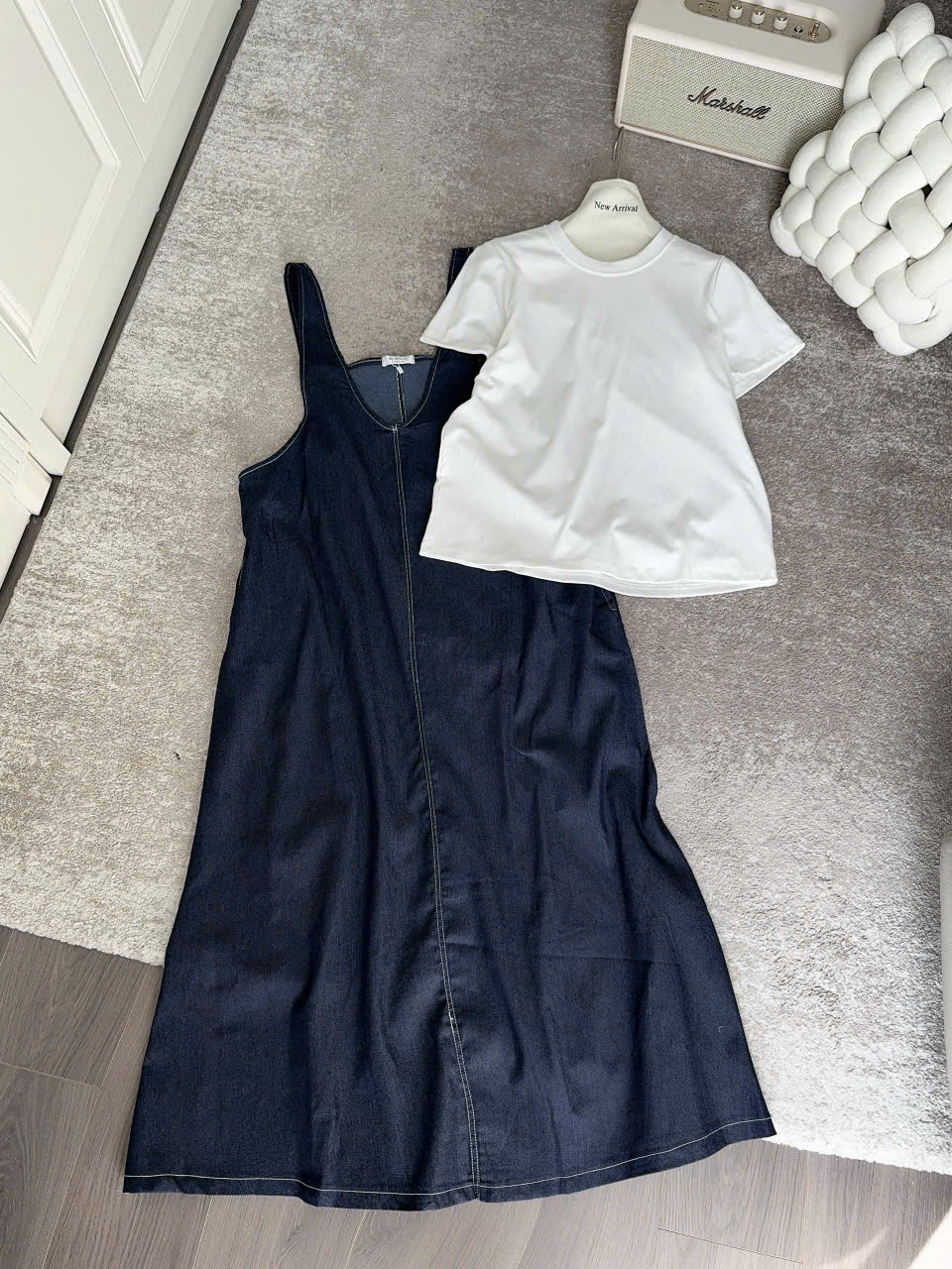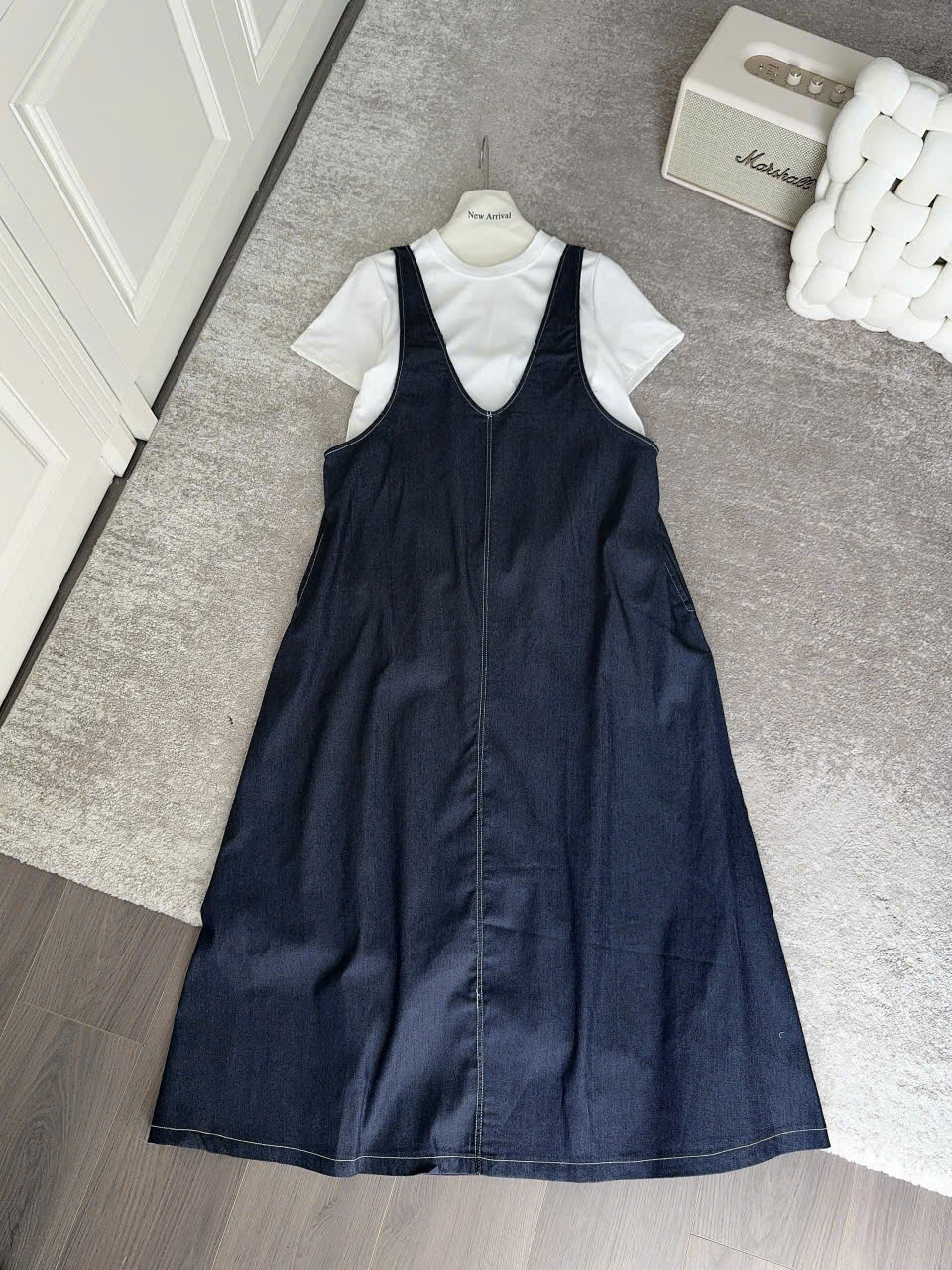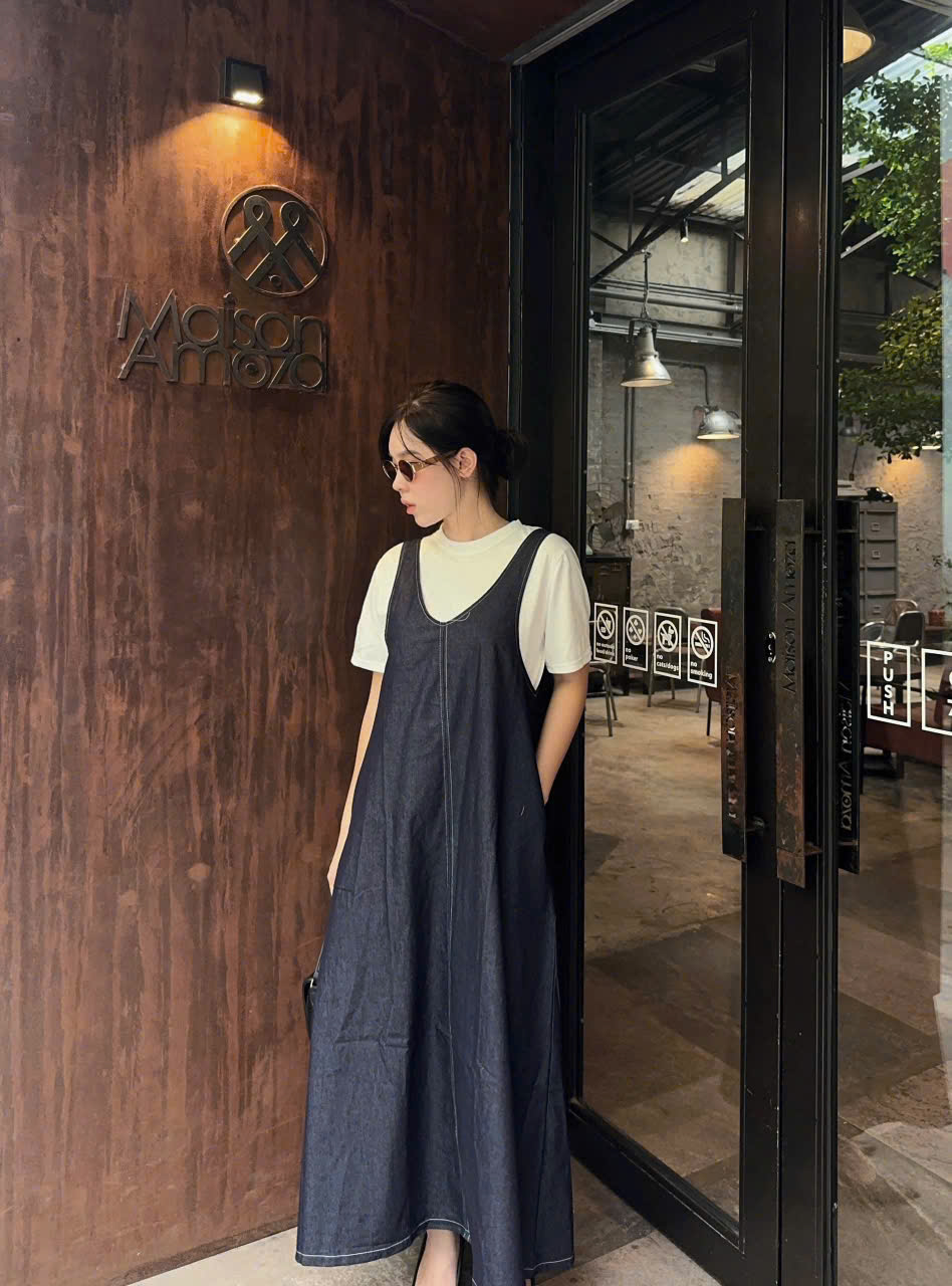 Váy yếm: dài 128cm , eo fit<108cm, mông fit<120