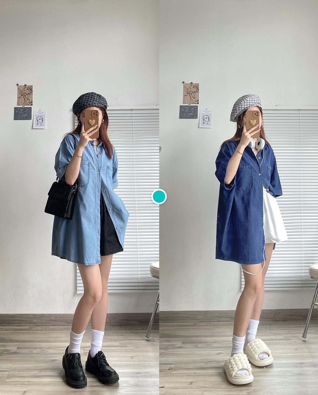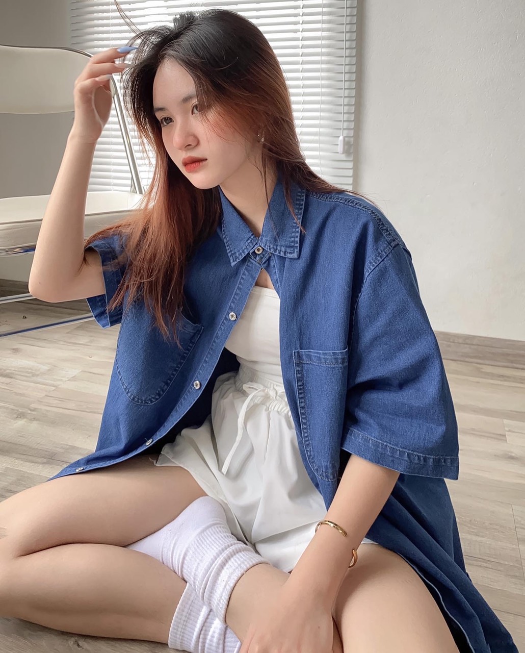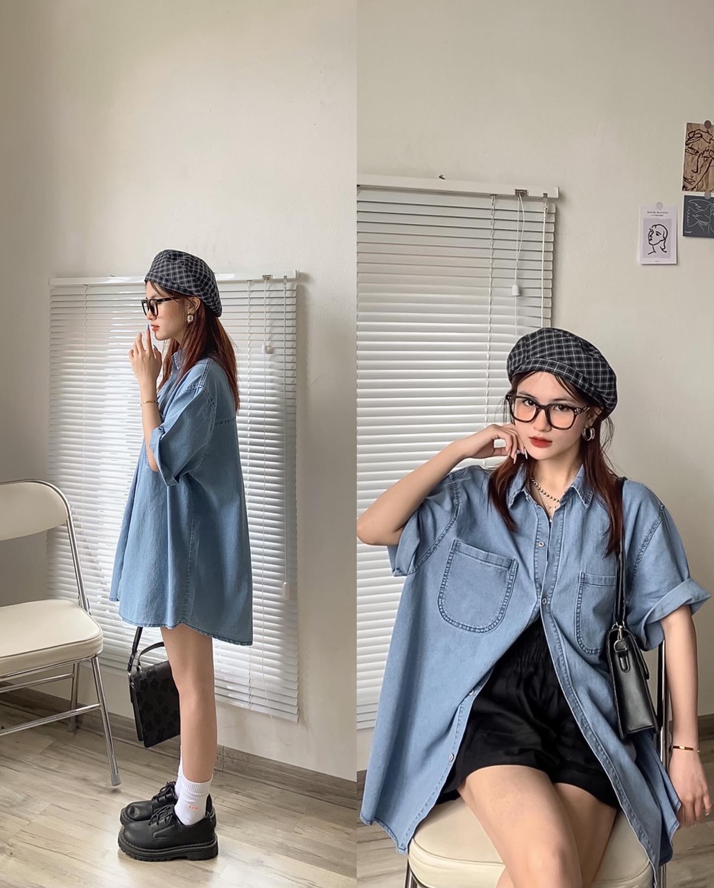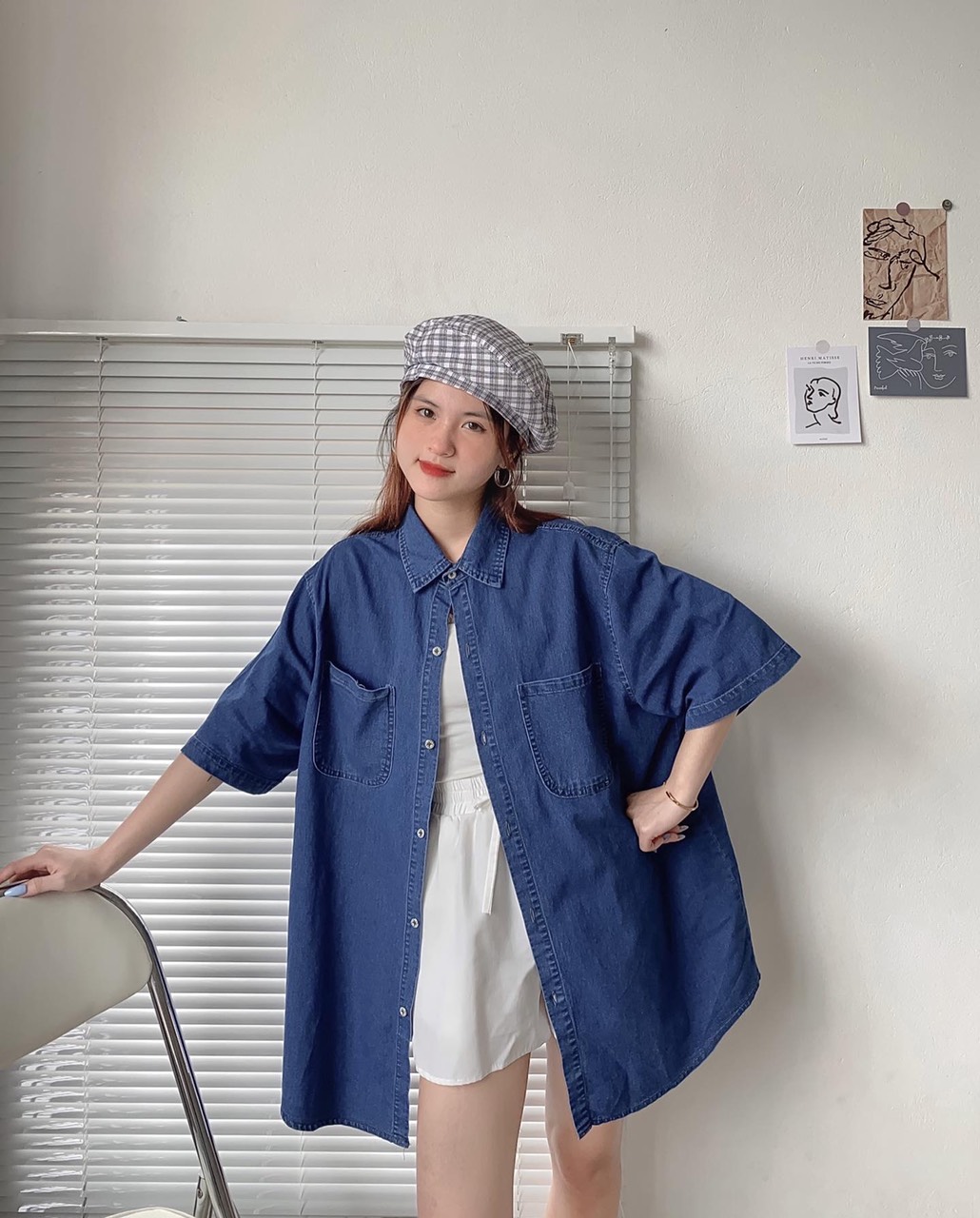 Sơ mi Denim chất vải bò giấy, mềm, nhẹ, khả năng thấm hút mồ hôi tốt, form dáng dụng oversize