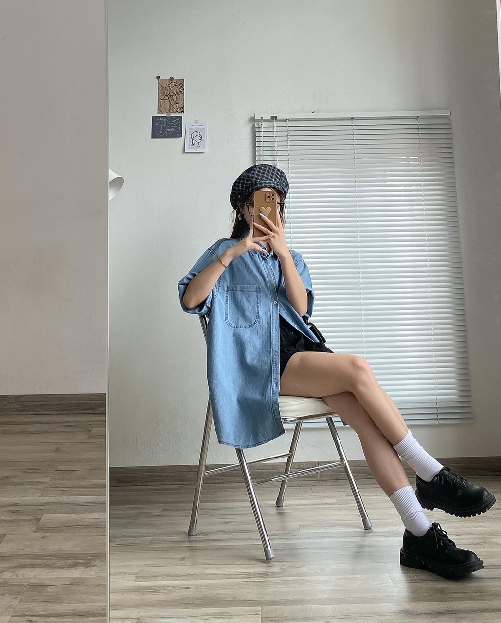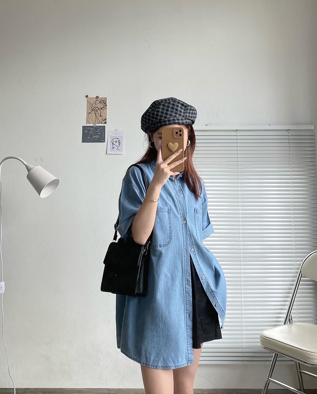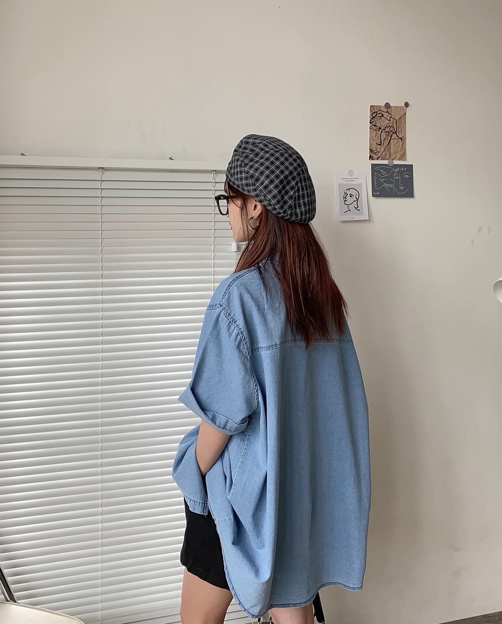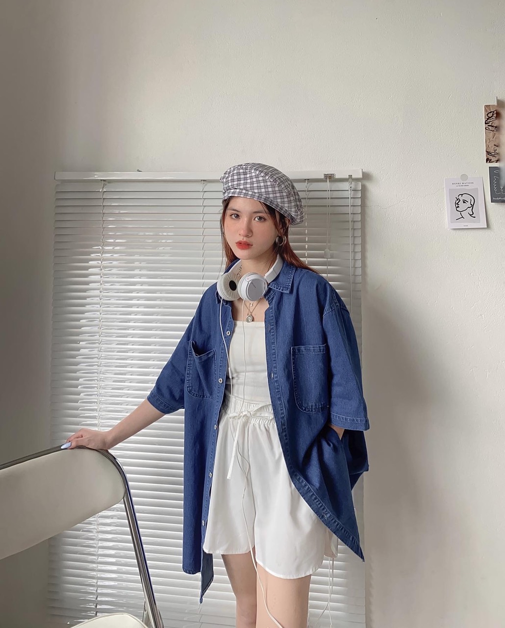 Sơ mi Denim chất vải bò giấy, mềm, nhẹ, khả năng thấm hút mồ hôi tốt, form dáng dụng oversize